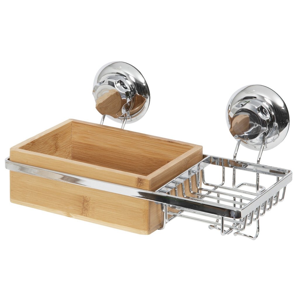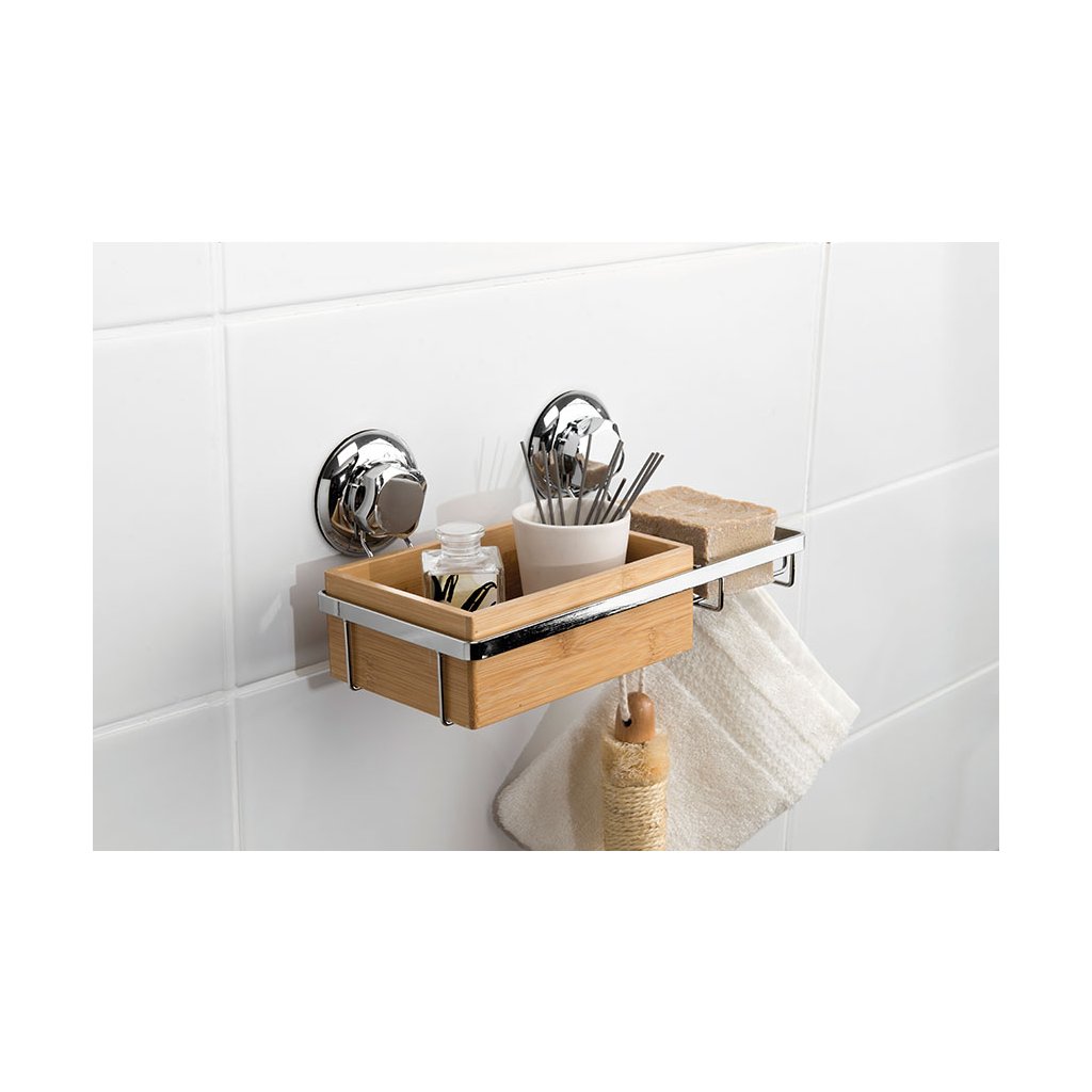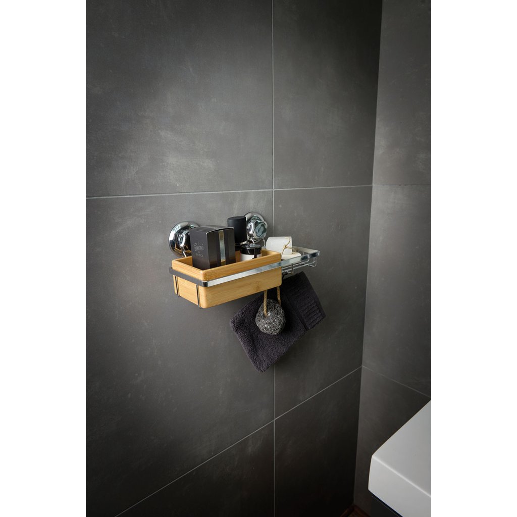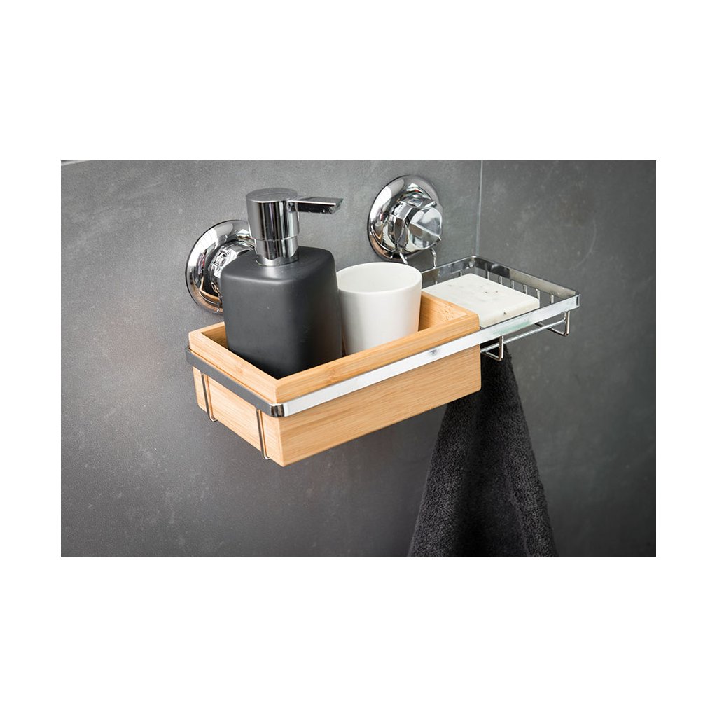 Bambusová police do koupelny s držákem na mýdlo Compactor Bestlock SPA Bamboo s přísavkou