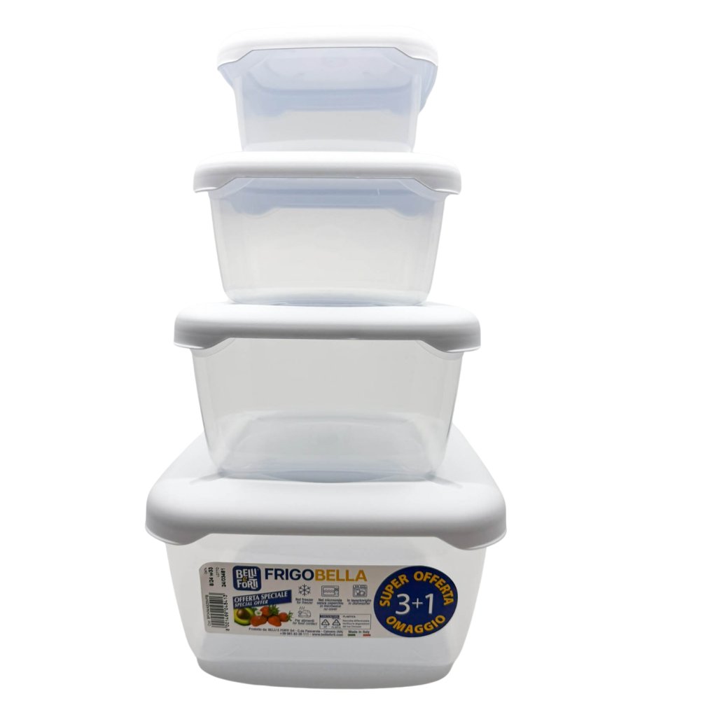 Belli E Forti sada potravinových dóz FRIGOBELLA 3+1, čtvercové s víkem, plastové