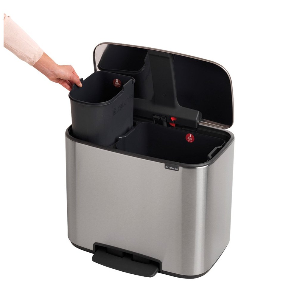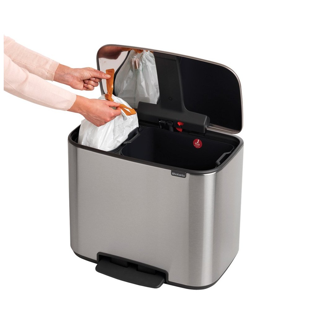Produkuje vaše domácnost velké množství odpadu a nedaří se vám najít ten správný koš? Koše, které se vám líbí jsou moc malé a velké koše naopak nenabízí vzhled a design, který byste ocenili? Potom je dost možné, že tento Bo pedálový odpadkový koš holandské značky Brabantia je dělaný přímo pro Vás! Tento designový klenot je uvnitř rozdělen na dvě samostatné nádoby o objemu 11 a 23 litrů pro váš odpad kterýmůžete třídit a přitom nezabere tolik místa, díky tomu, že jej lze umístit bezprostředně do rohu místnosti nebo ke stěně. Koš je vyroben z kvalitních materiálů a díky tomu vám vydrží dlouhá léta - záruka 10 let.