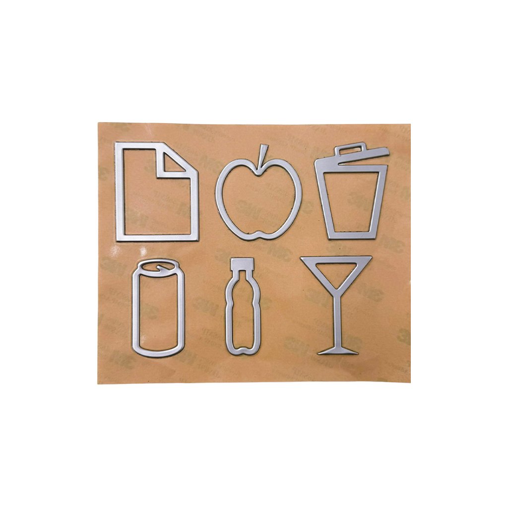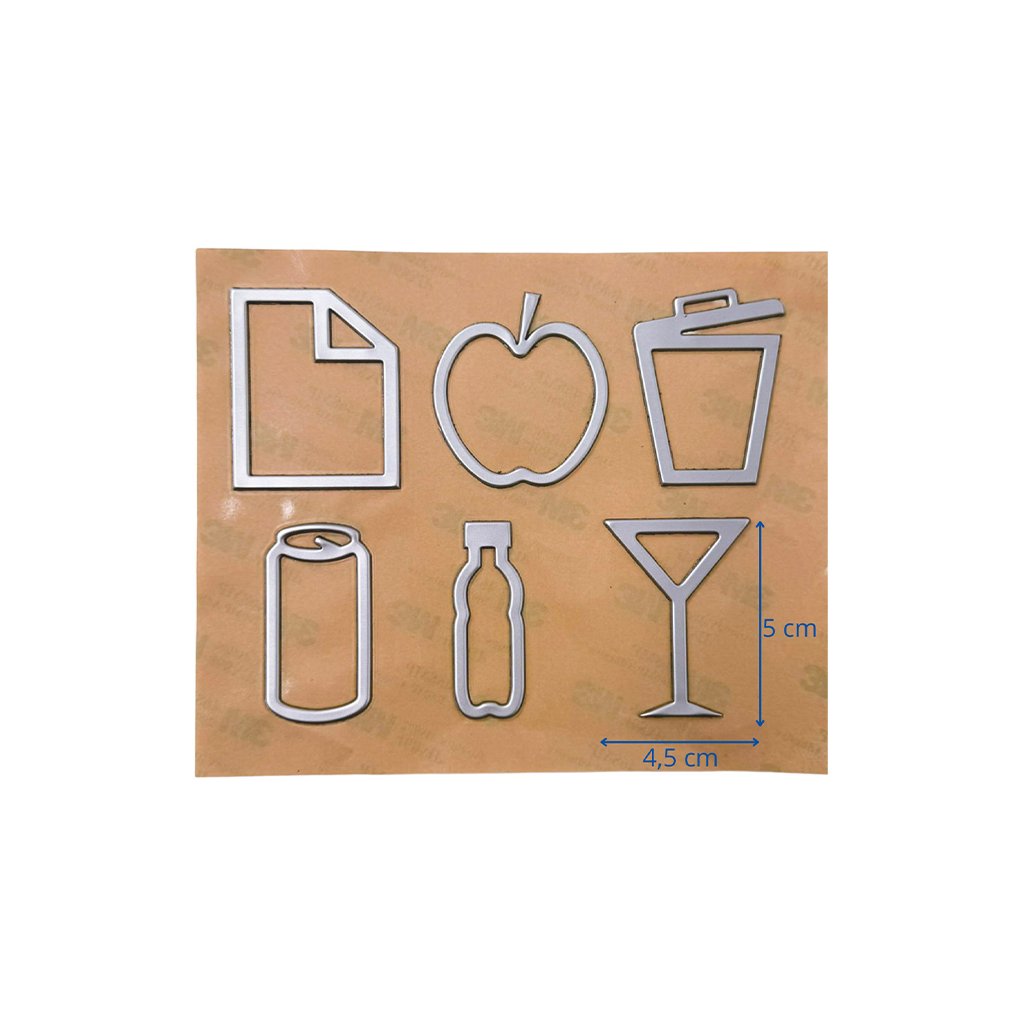 Caimi Brevetti SADA 6 ks samolepek na odpadkový koš pro tříděný odpad, 4,5 x 5 cm