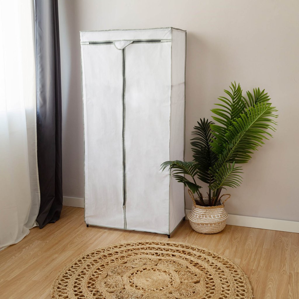 Tato šatní skříň je ideální pro sezónní oblečení, jako dočasný úložný prostor nebo pro ty, kteří hledají mobilní alternativu ke klasickému nábytku. Snadná montáž bez nářadí vám umožní mít skříň připravenou během několika minut.