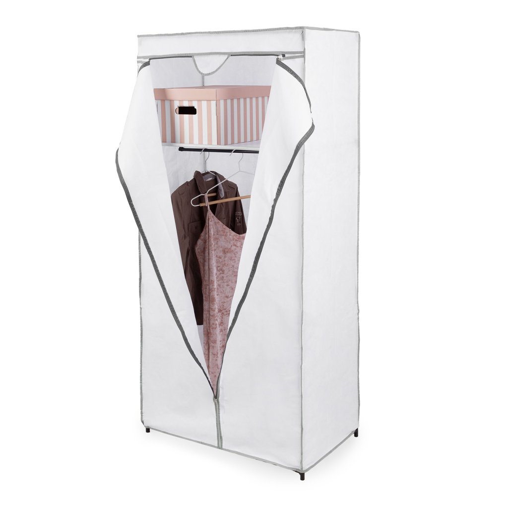 Compactor látková šatní skříň TELLA, kovová konstrukce, na zip, 70 x 45 x 155 cm, bílá