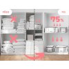 S vakuovým úložným boxem Compactor Life získáte až o 75% více úložného prostoru a zároveň dokonale ochráníte obsah před vnějšími škodlivými vlivy. Uložený textil se po odsátí vzduchu smrští na minimum, aniž by došlo k jeho poškození. Vnitřní vak je vyroben z vysoce kvalitního polymeru s tvarovou pamětí, který nenarušuje vlákna. Proto je oblečení po dekompresi připraveno k okamžitému použití ve svém původním stavu. Vakuový pytel je k vnějšímu boxu připevněn patentovaným systémem pro dokonalou funkčnost a je opakovaně použitelný (více než 100 x).