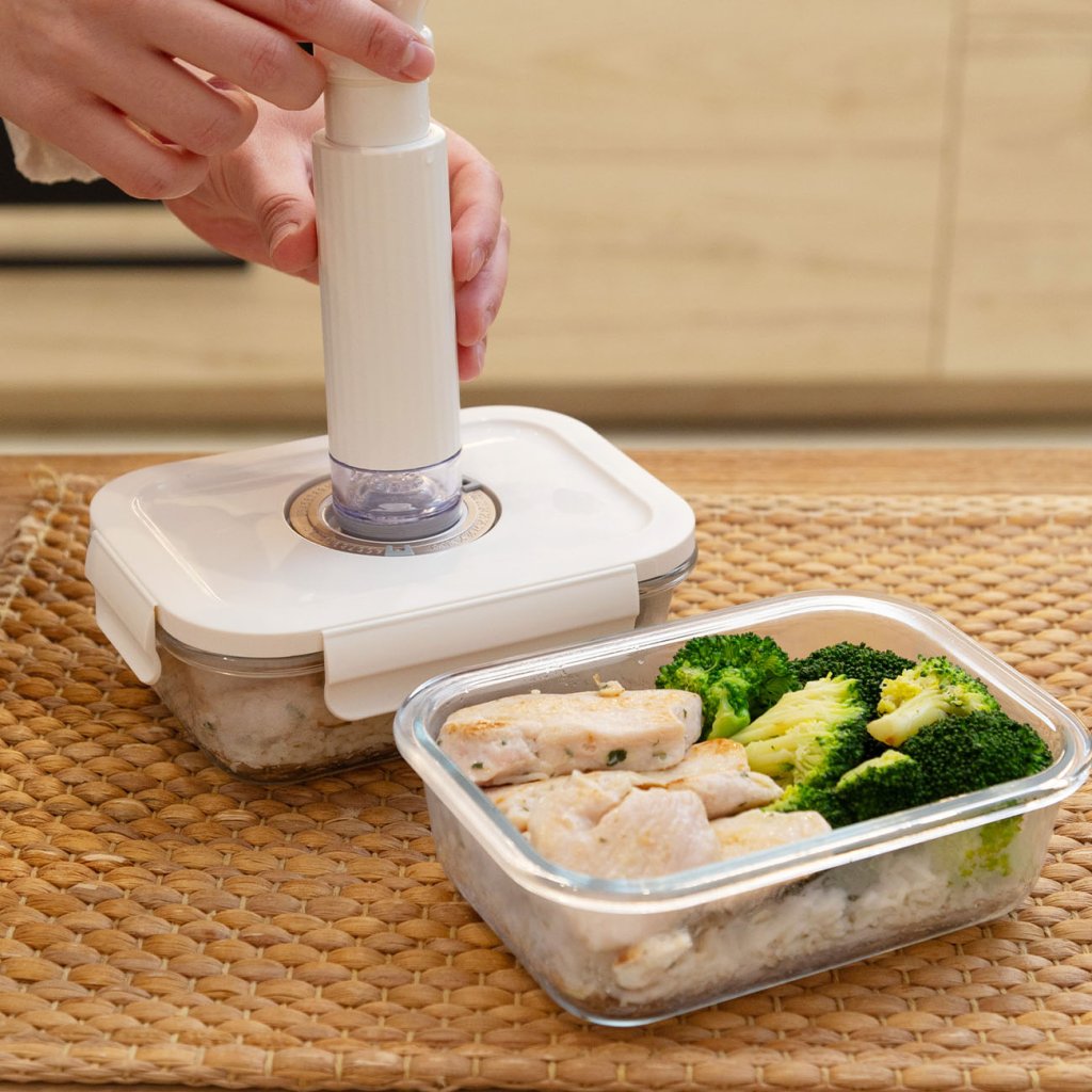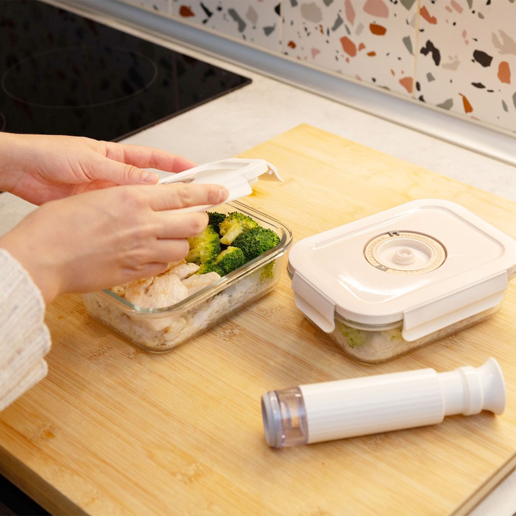Manuální vakuová pumpa ASPIFRESH od značky Compactor je nepostradatelným doplňkem pro vakuové skleněné dózy ze stejné řady. Slouží k rychlému a snadnému odsátí vzduchu z dóz, čímž výrazně prodlužuje čerstvost potravin, omezuje oxidaci, osychání i množení aerobních mikroorganismů. Výsledkem je delší trvanlivost potravin, méně plýtvání a více pořádku v kuchyni.