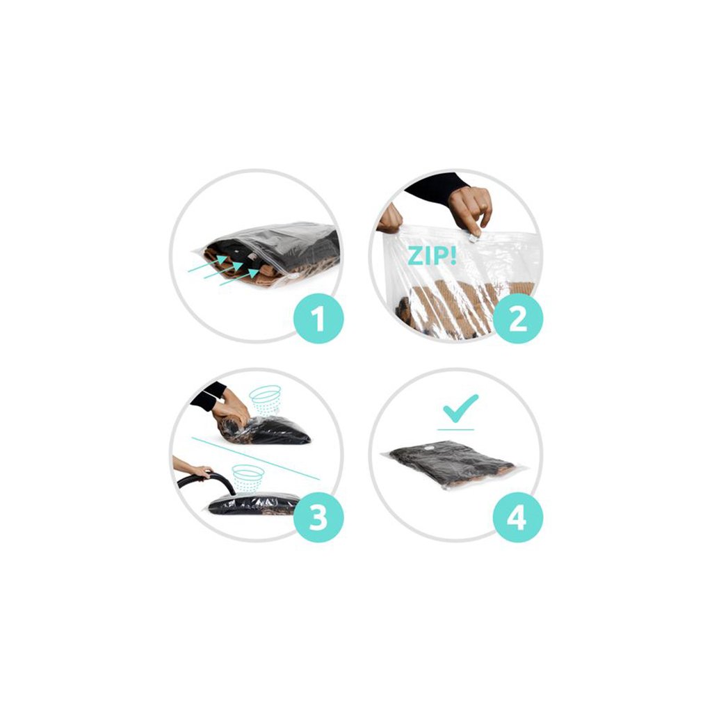 - Snadné použití – vzduch lze odsát běžným vysavačem