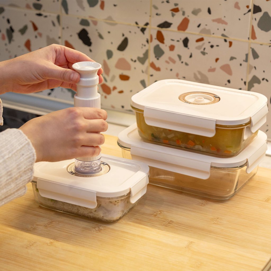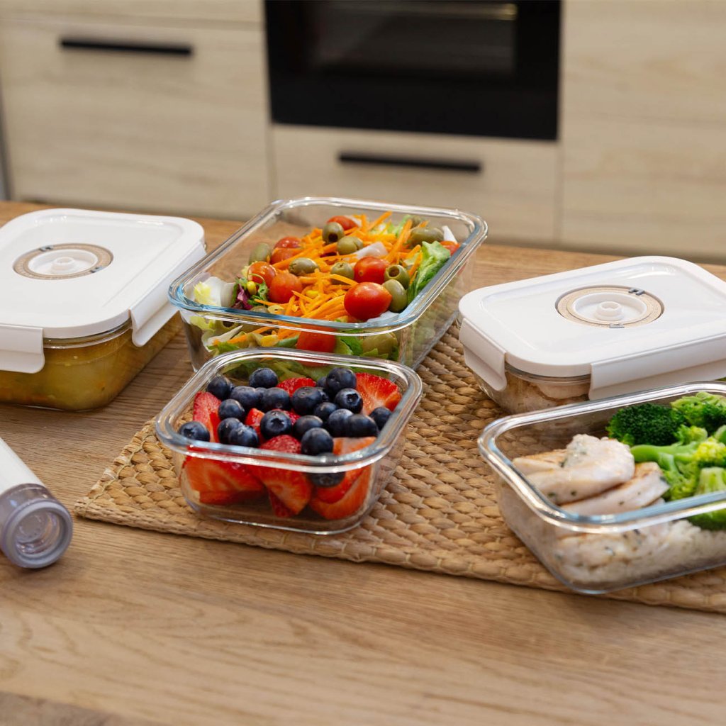 Skleněné vakuovací dózy na potraviny ASPIFRESH představují praktické a chytré řešení pro uchovávání potravin s prodlouženou čerstvostí. Ať už skladujete ovoce, zeleninu, maso, sýry nebo zbytky z oběda, dózy ASPIFRESH pomohou udržet potraviny až třikrát déle čerstvé, chutné a bezpečné. Jsou ideální pro každodenní použití, přípravu jídel předem (meal prep), zamrazování, ohřev v mikrovlnné troubě (bez víčka) nebo jako nádoby na servírování.
