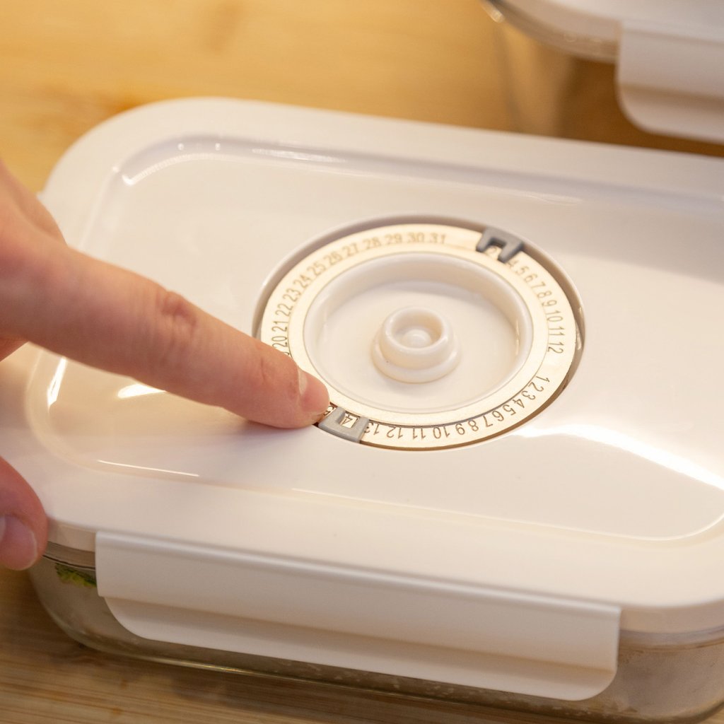 Každá dóza je vybavena praktickým integrovaným datérem spotřeby, díky kterému snadno sledujete, kdy byly potraviny uloženy – už žádné zapomenuté zbytky v lednici. Dózy jsou vyrobeny z kvalitního borosilikátového skla, které odolává teplotám až do 250 °C (bez víčka) a je vhodné i pro mražení. Zacvakávací víčka z odolného polypropylenu se silikonovým těsněním perfektně těsní a neobsahují BPA ani ftaláty, což zajišťuje bezpečné skladování pro celou rodinu. Dózy jsou stohovatelné a skleněnou část lze mýt v myčce nádobí.