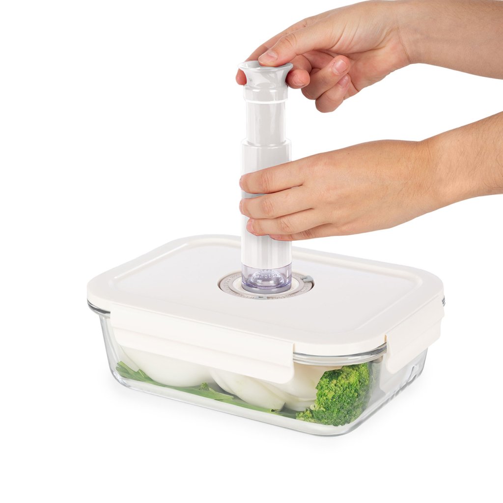 Pro dosažení vakuového efektu je potřeba k dóze použít ruční vakuovou pumpu ASPIFRESH, která se prodává samostatně. Pomocí jednoduchého odsátí vzduchu výrazně zpomalíte oxidaci, osychání i množení aerobních mikroorganismů, a tím prodloužíte trvanlivost uložených potravin.