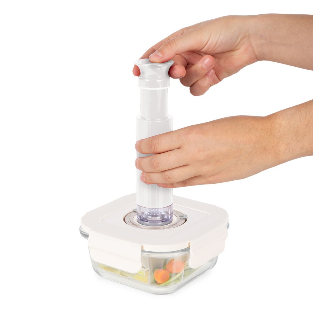 Pro dosažení vakuového efektu je potřeba k dóze použít ruční vakuovou pumpu ASPIFRESH, která se prodává samostatně. Pomocí jednoduchého odsátí vzduchu výrazně zpomalíte oxidaci, osychání i množení aerobních mikroorganismů, a tím prodloužíte trvanlivost uložených potravin.