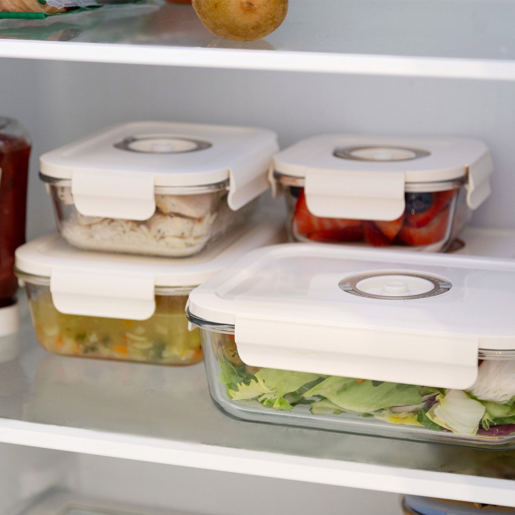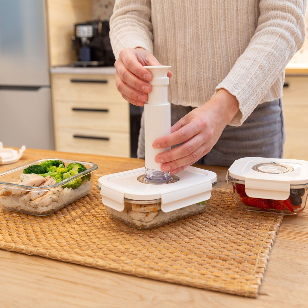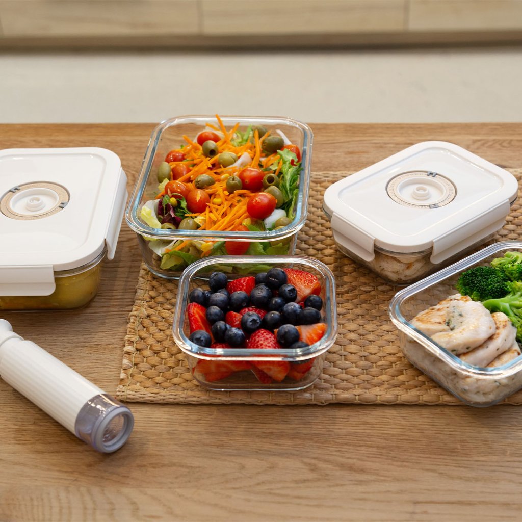 Skleněné vakuovací dózy na potraviny ASPIFRESH představují praktické a chytré řešení pro uchovávání potravin s prodlouženou čerstvostí. Ať už skladujete ovoce, zeleninu, maso, sýry nebo zbytky z oběda, dózy ASPIFRESH pomohou udržet potraviny až třikrát déle čerstvé, chutné a bezpečné. Jsou ideální pro každodenní použití, přípravu jídel předem (meal prep), zamrazování, ohřev v mikrovlnné troubě (bez víčka) nebo jako nádoby na servírování.