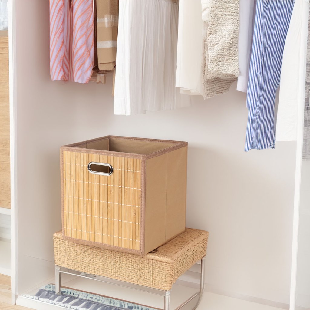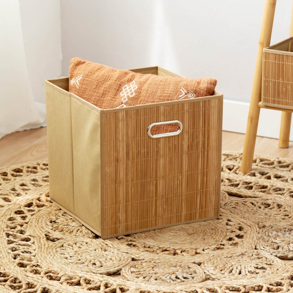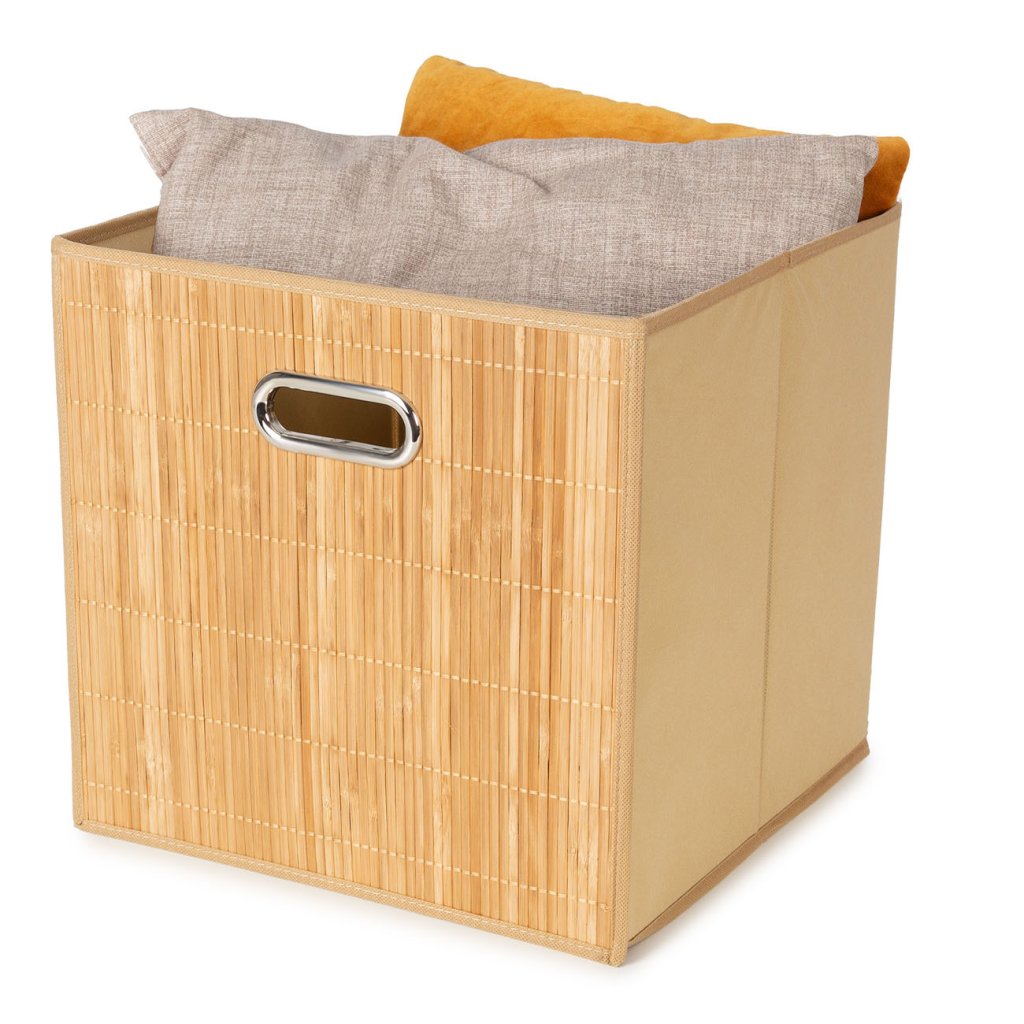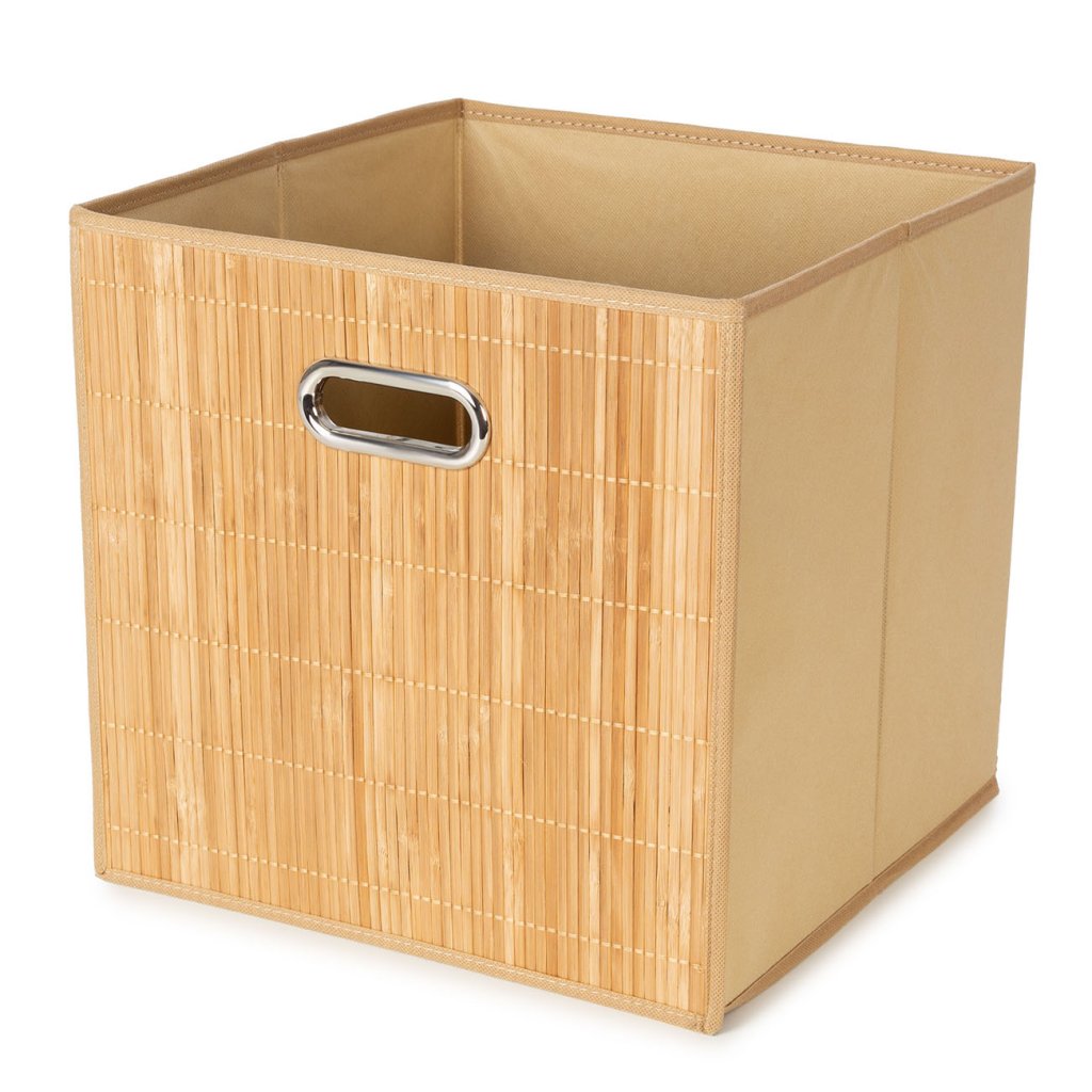Compactor úložný košík ANJI - L, bambusový s látkou, 31 x 31 x 31 cm, přírodní