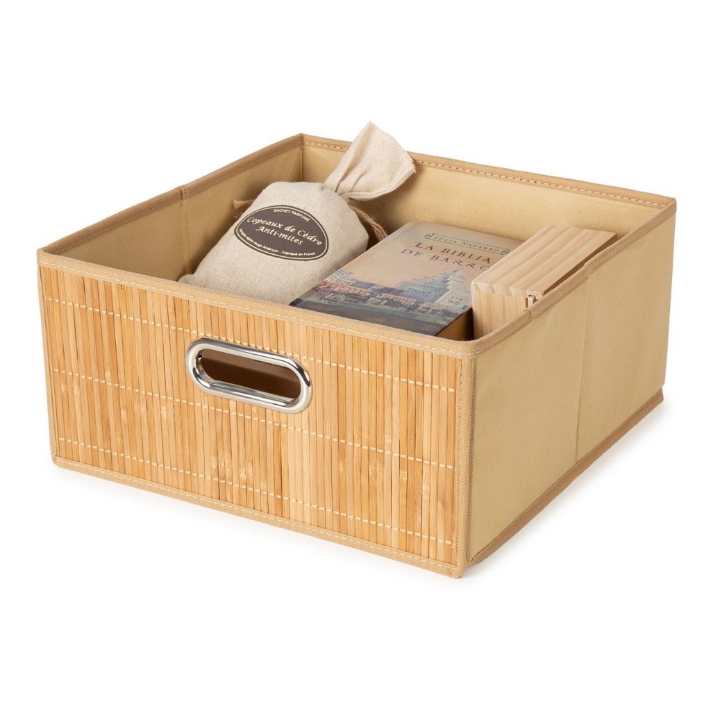 Compactor úložný košík ANJI - M, bambusový s látkou, 31 x 31 x 15 cm, přírodní
