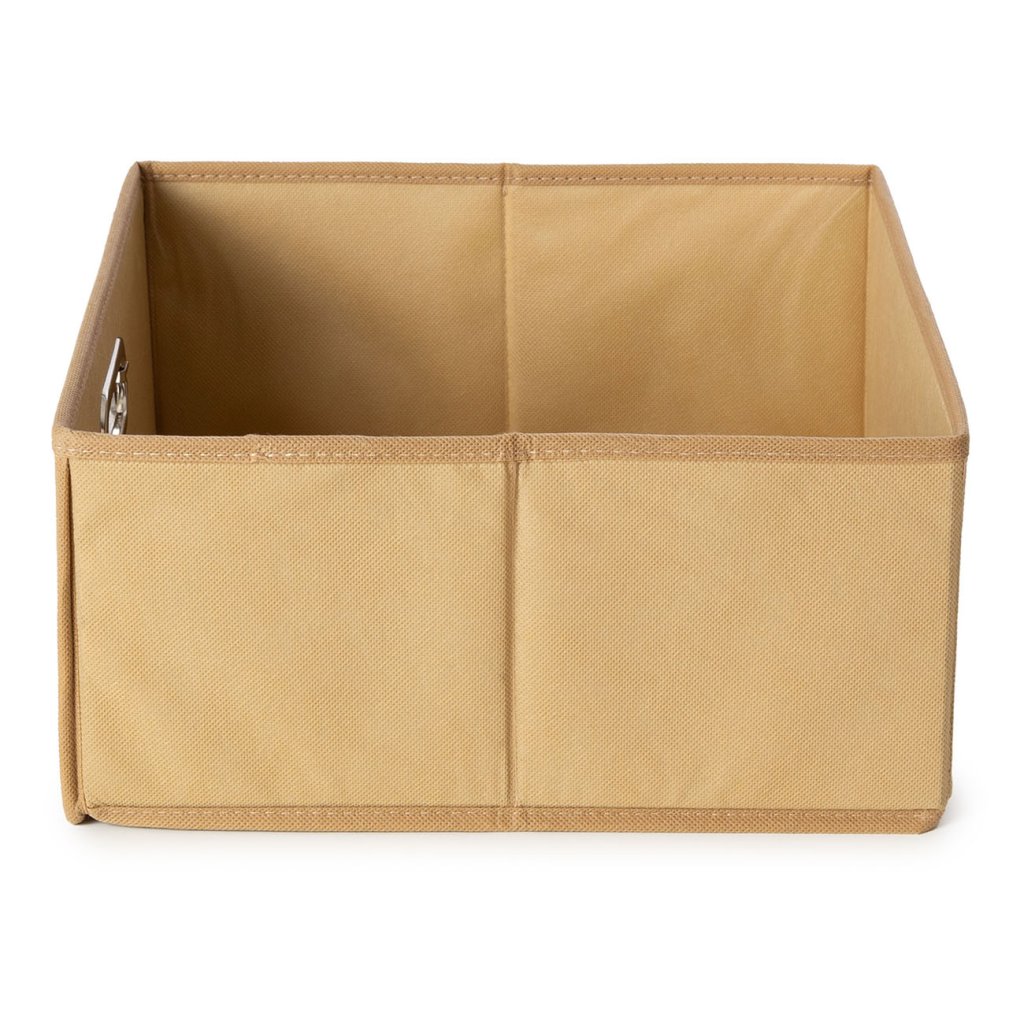Díky kompaktním rozměrům (31 × 31 × výška 15 cm) se skvěle hodí do skříní, polic nebo koupelnových skříněk. Uspořádejte v něm kosmetiku, ručníky, kuchyňské doplňky nebo dětské drobnosti – zkrátka vše, co potřebuje své místo. Košík je vybaven praktickým kovovým úchytem pro pohodlnou manipulaci.