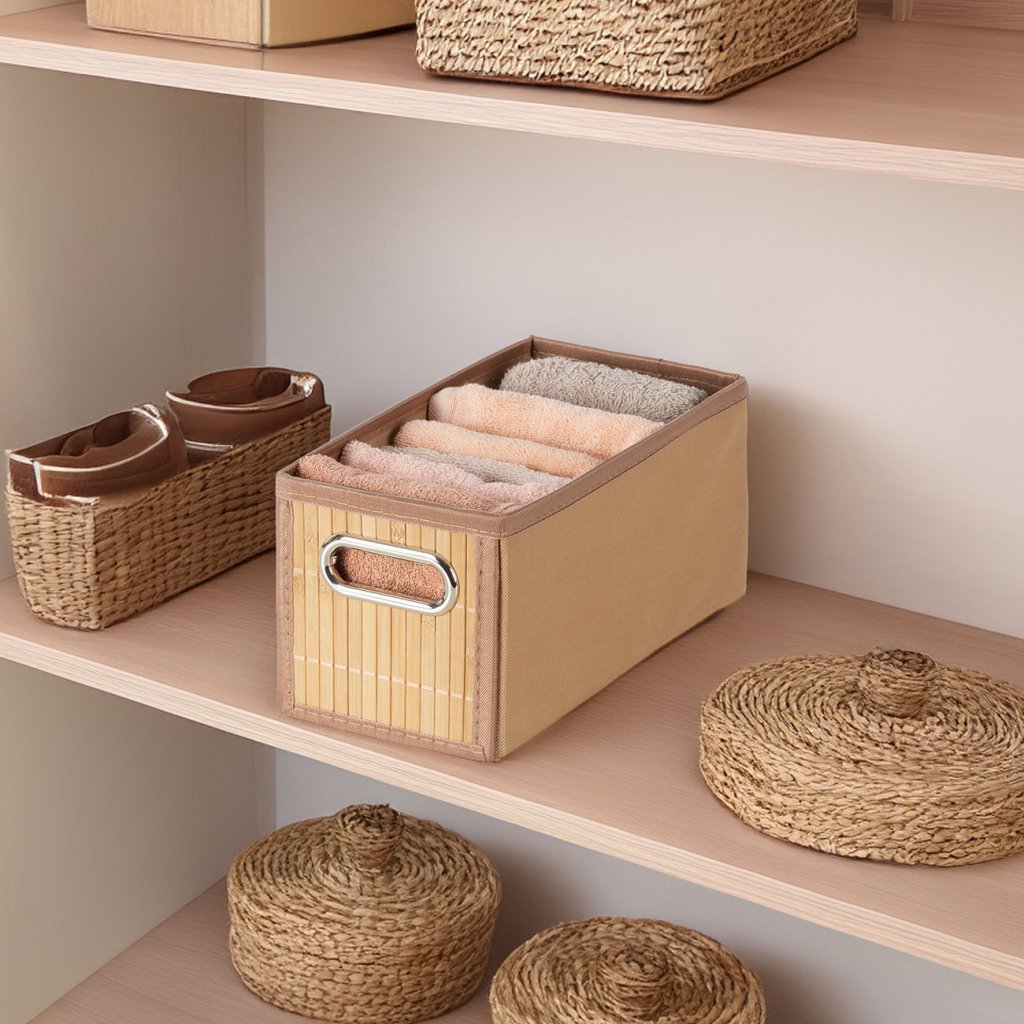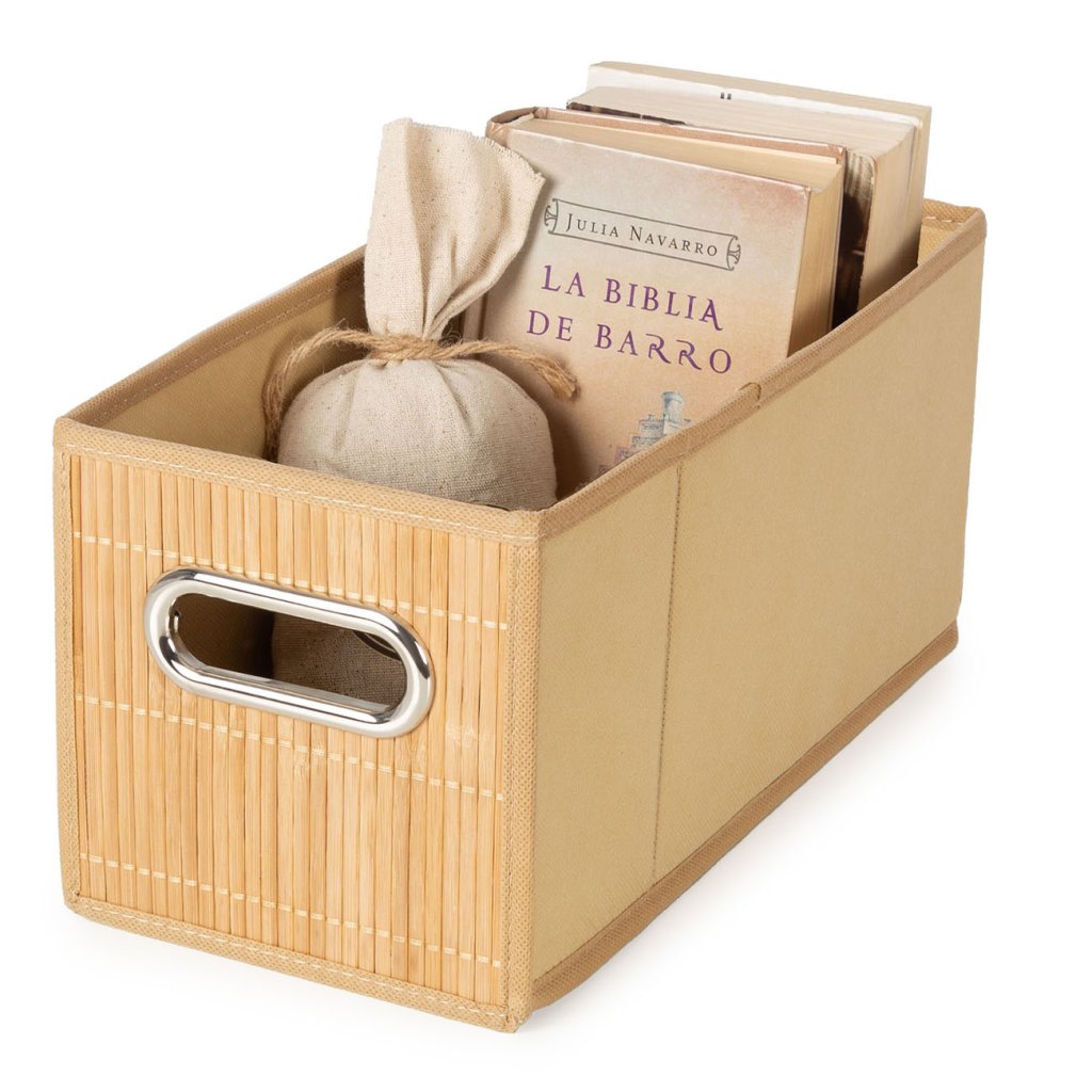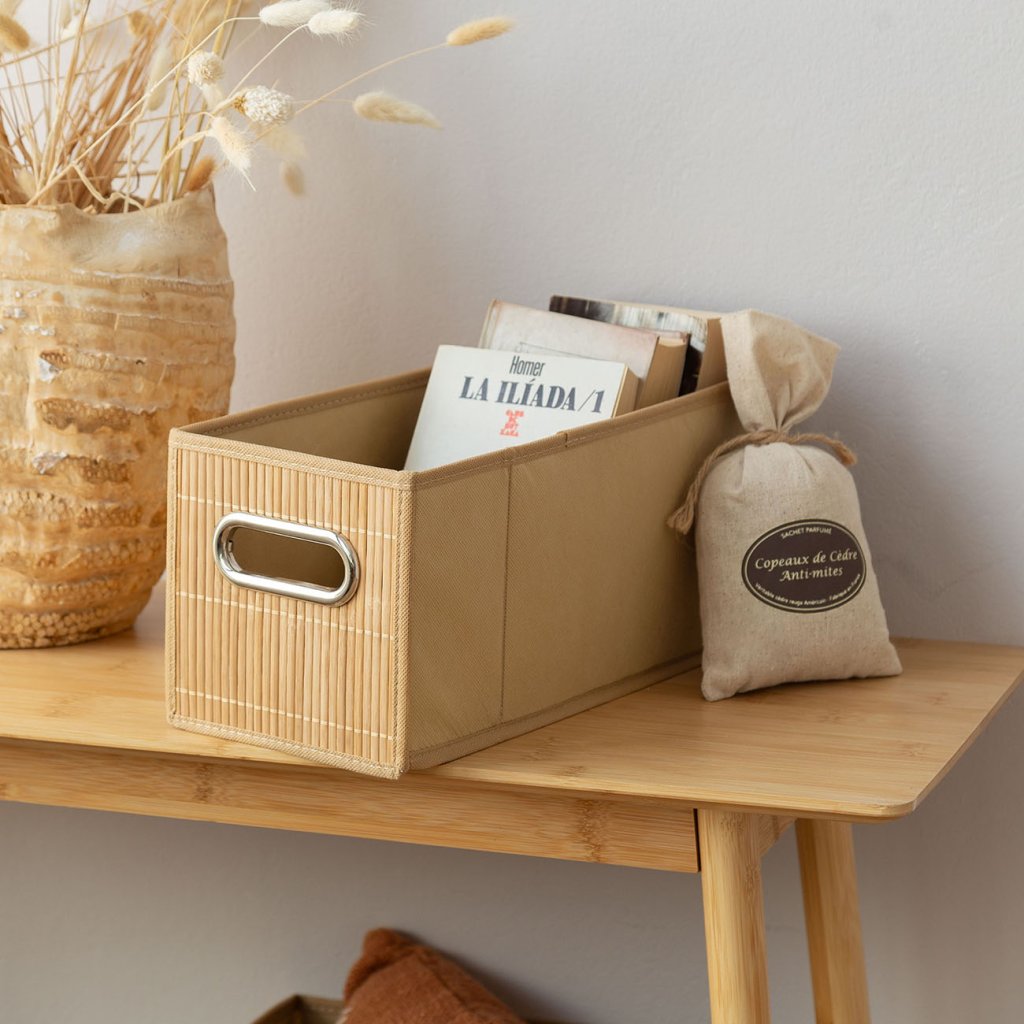 Compactor úložný košík ANJI - S, bambusový s látkou, 31 x 15 x 15 cm, přírodní