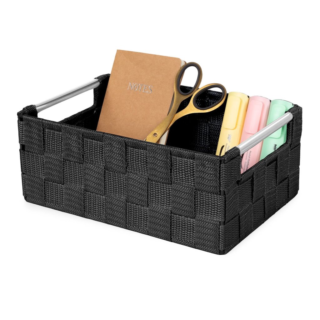 Compactor úložný košík s kovovými madly STAN - S, tkané pásky, 25 x 17 x 10 cm, černý