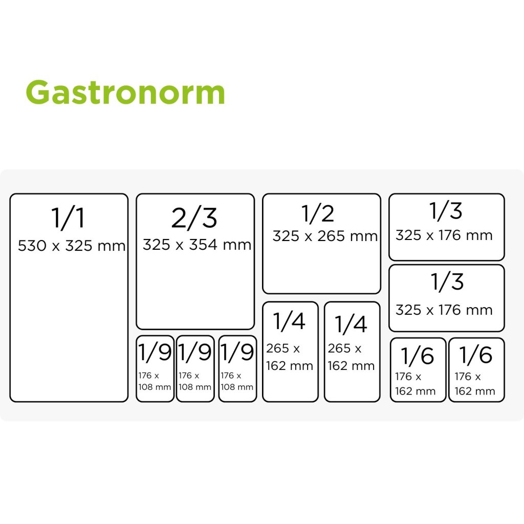 Označení GN (GastroNorm) je mezinárodně uznávaný standard pro velikosti gastronádob, který usnadňuje organizaci, skladování a práci v profesionálních i domácích kuchyních. Díky kompatibilitě tak snadno zapadnou do výdejních linek, lednic, mikrovlnek i chladicích vitrín.
