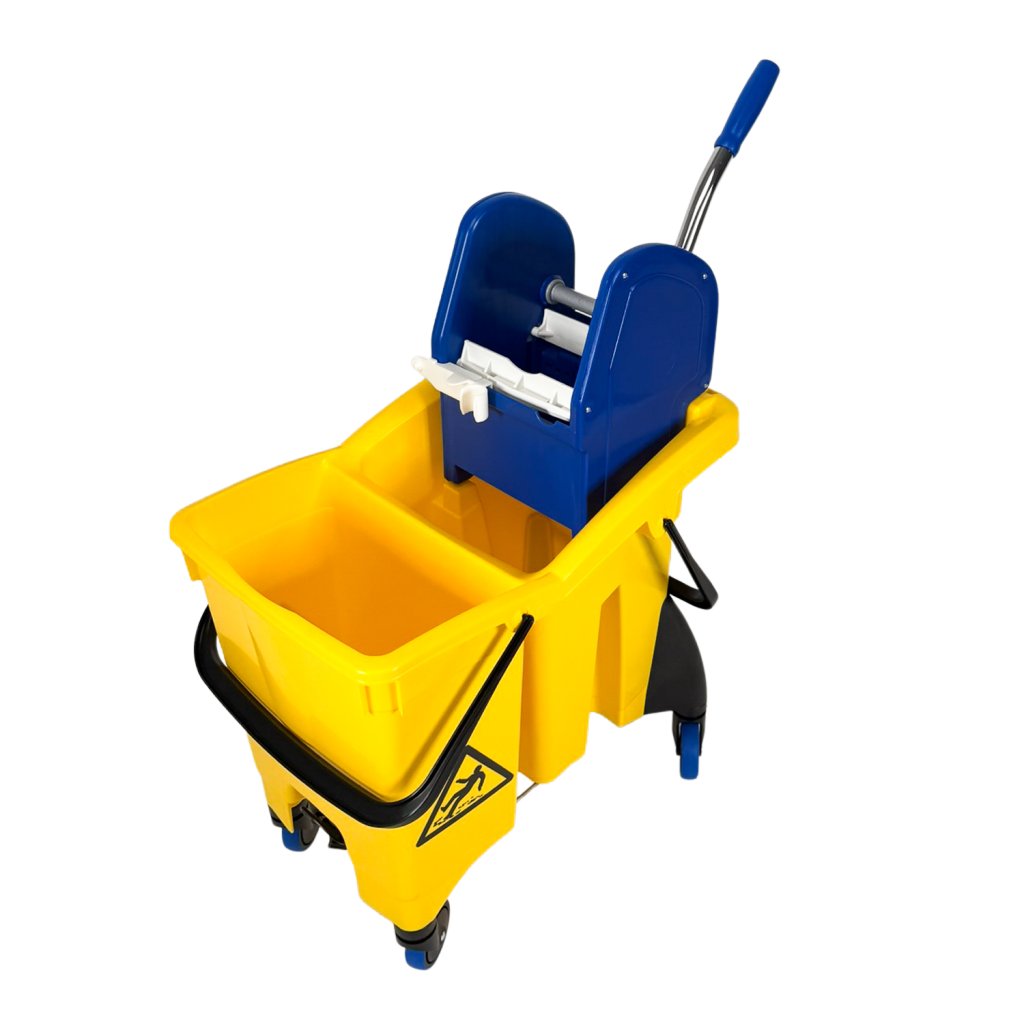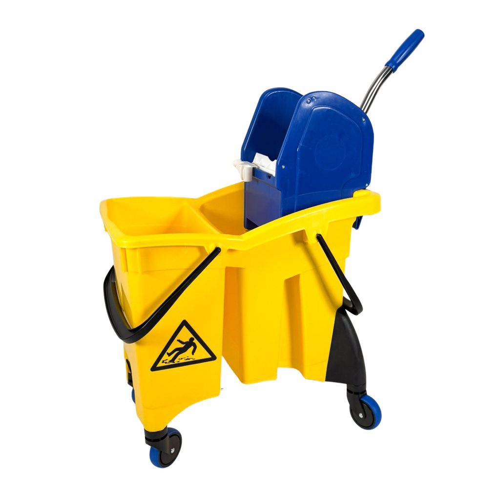 Tento profesionální úklidový vozík Denox s objemem 30 litrů je ideální pro efektivní čištění menších a středně velkých prostor. Je vybaven jedním plastovým kbelíkem s vnitřním rozdělením na čistou a špinavou vodu, což umožňuje hygieničtější práci a zvyšuje účinnost úklidu. Vhodně navržený ždímač na mop a čtyři otočná kolečka zajišťují pohodlné používání i v náročnějším provozu. Díky kompaktním rozměrům je ideální pro úklid v kancelářích, školkách, restauracích nebo menších provozech. Rozměr: 66 x 29 x 59 cm.