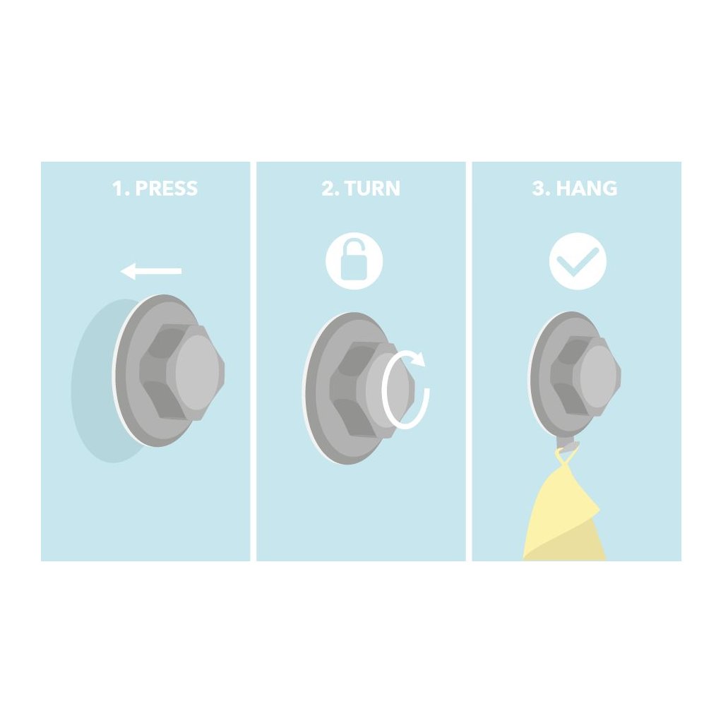 Připevnit závěsný systém Bestlock je prostě hračka. Prvním krokem k úspěšné instalaci je odstranění nečistot z hladkého, neporézního povrchu, který jste si vybrali. Přísavku umístěte na plochu dlaždice (skla, zrcadla…), nikoli na spáru! Odstraňte z přísavky ochrannou fólii a poté ji k povrchu pevně přitiskněte a zajistěte maticí tak, že ji pootočíte o 1/4 otáčky ve směru hodinových ručiček. Nyní je hotovo!