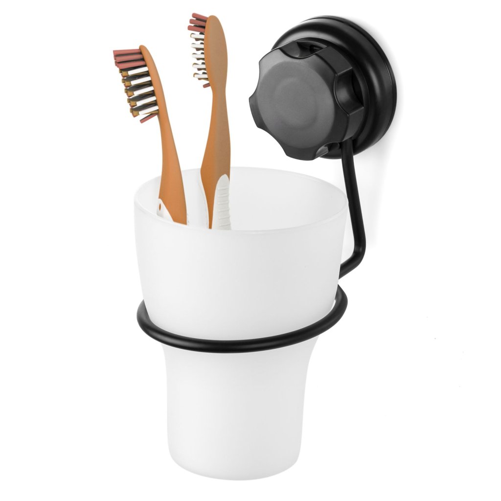 Držák na zubní kartáčky Compactor Bestlock Black s přísavkou - bez vrtání