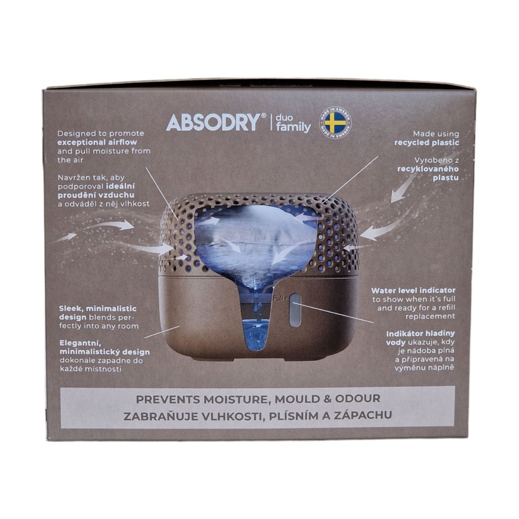 Absodry Duo Family je vyroben z recyklovaného plastu. Švédská společnost Everbrand je moderní firmou se silným enviromentálním přístupem k životnímu prostředí. A pokud zbavíte vaši domácnost vlhkosti a nepříjemných plísní, je to přesně ten stav, který si firma dala jako svůj cíl.
