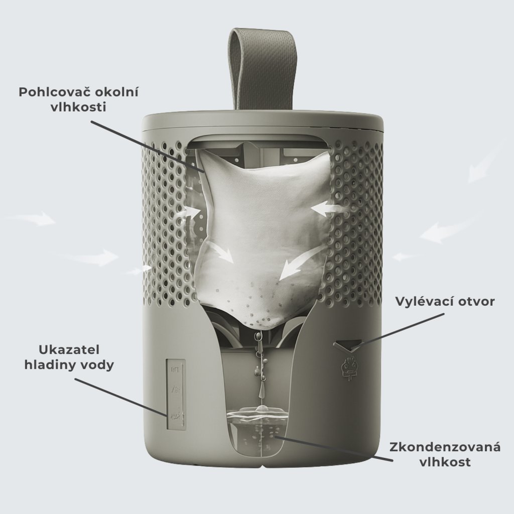 Snižte riziko vzniku plísní a nepříjemného zápachu s pohlcovačem vlhkosti Absodry ve tvaru nenápadného válce, jehož design je navržen tak, aby se hodil do každé moderní domácnosti. Funguje na principu pasivního provozu (bez el. energie), proto je naprosto tichý a vaším jediným úkolem je jednou za pár týdnů vylít nádržku s kondenzovanou vodou. Kompaktní rozměr umožňuje přemisťovat pohlcovač dle aktuální potřeby.