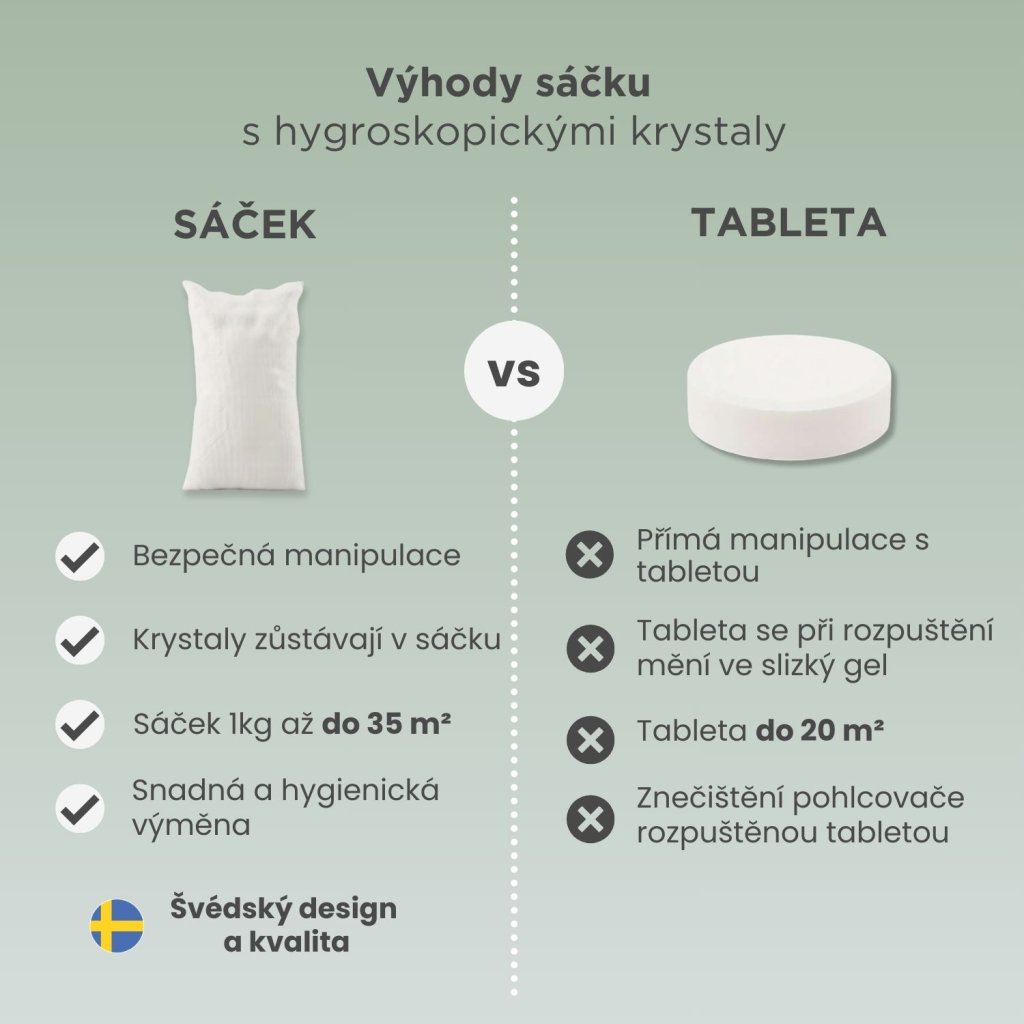 - tichý provoz: funguje na principu hygroskopických krystalů bez použití elektřiny