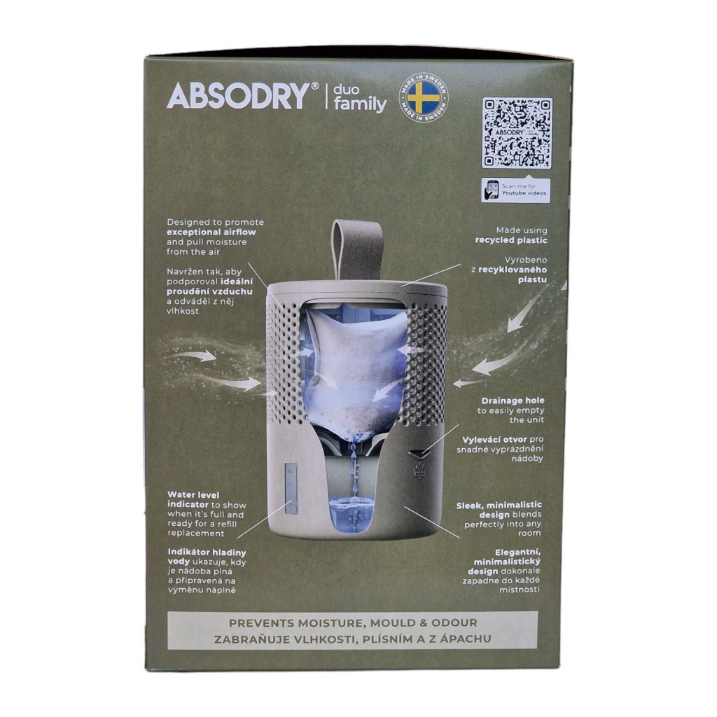 Absodry Duo Family je vyroben z recyklovaného plastu. Švédská společnost Everbrand je moderní firmou se silným enviromentálním přístupem k životnímu prostředí. A pokud zbavíte vaši domácnost vlhkosti a nepříjemných plísní, je to přesně ten stav, který si firma dala jako svůj cíl.