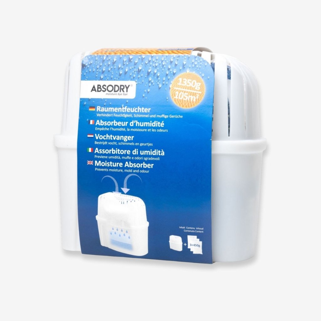 Pohlcovač vlhkosti Absodry Maxi od švédské značky Everbrand spojuje maximální funkčnost a skandinávský minimalismus. Udržuje optimální úroveň vlhkosti v místnosti, podporuje zdravé životní prostředí a působí preventivně proti alergiím a dýchacím potížím. Součástí balení je 1 náplň hygroskopických krystalů, která vydrží až 90 dní v závislosti na vlhkosti a teplotě prostředí.