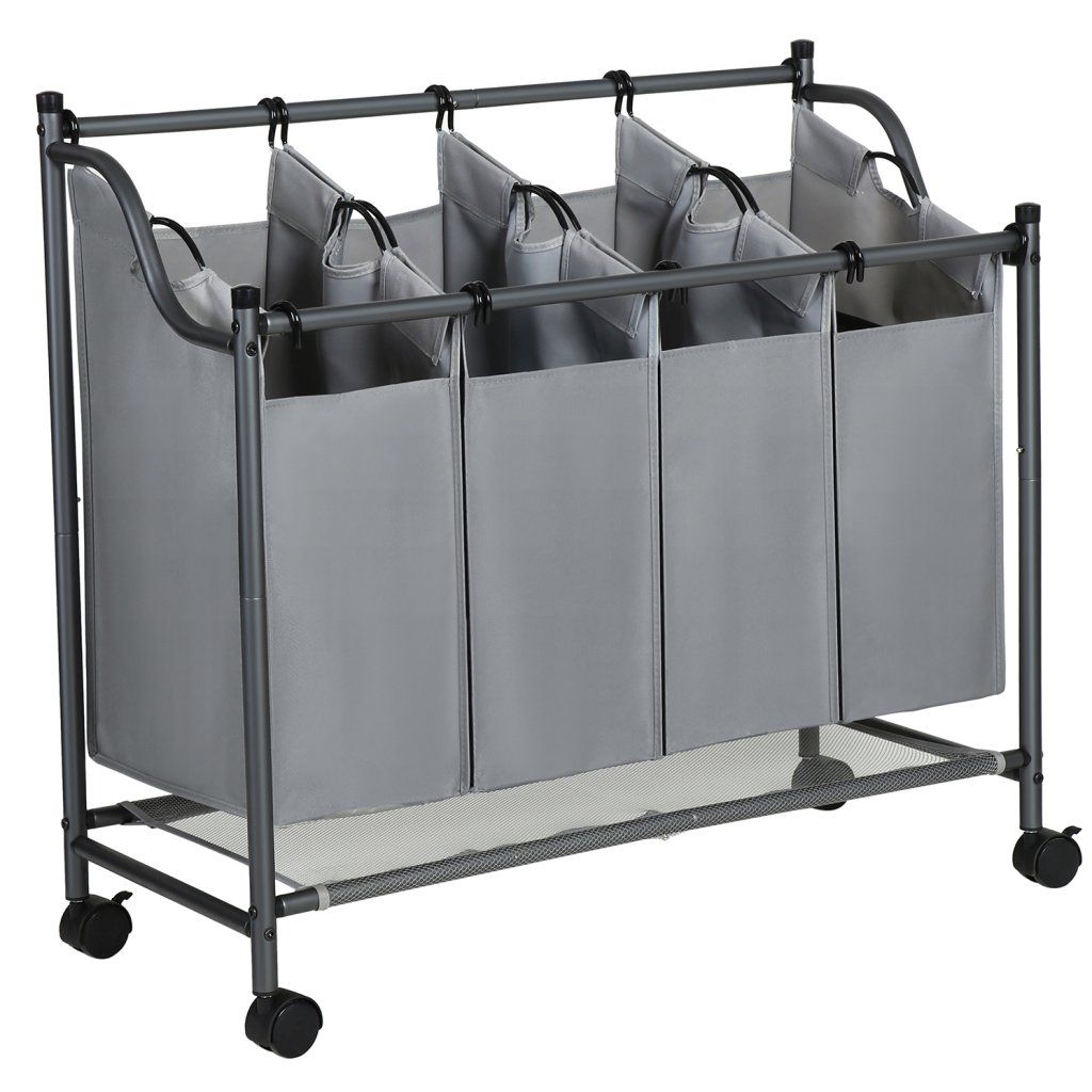Koš na třídění prádla, pojízdný, Songmics LSF005GS, 81 x 87,85 x 38,5 cm