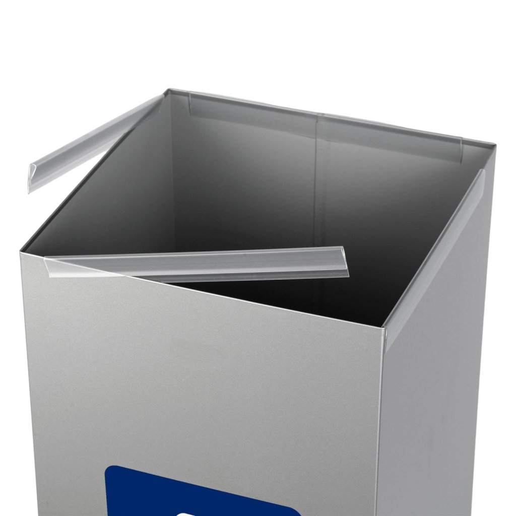 Tento velký odpadkový koš na tříděný odpad s modrým víkem a vhazovacím otvorem pro třídění papíru je ideální volbou pro každé místo, kde se třídí ve velkém. Vyroben z prvotřídní oceli s organickou povrchovou úpravou a zárukou 5 let, nabízí nejen odolnost, ale i dlouhou životnost. S objemem 90 l je perfektní pro frekventovaná veřejná a komerční místa, jako jsou nástupiště, letištní haly, školy, kanceláře, sklady, nemocnice, hotely a restaurace. Každý koš je barevně označen a opatřen samolepkou v češtině i angličtině. S odnímatelným víkem a praktickými držáky na odpadkové pytle je údržba snadná a hygienická.V kombinaci s dalšími variantami košů s barevnými víky si můžete vytvořit komplexní třídicí sestavu, díky které bude třídění přehledné a efektivní.