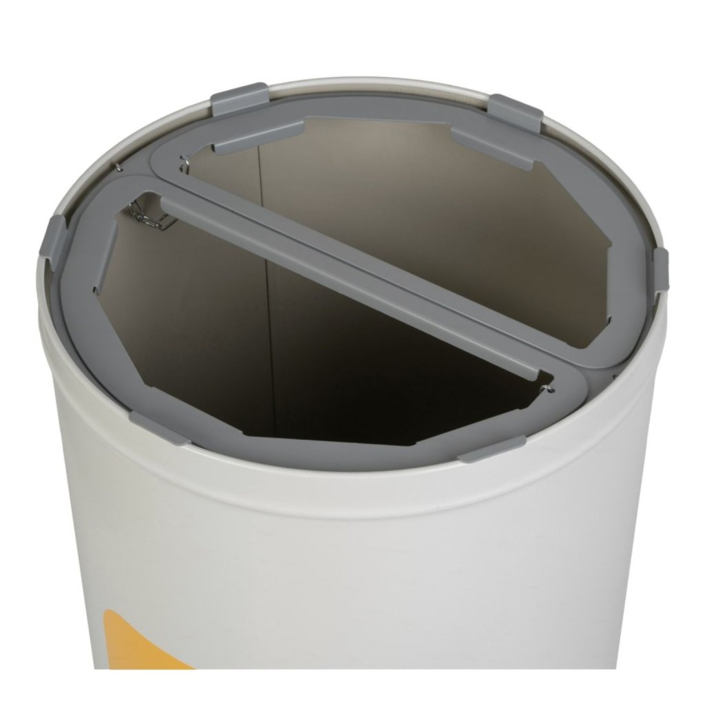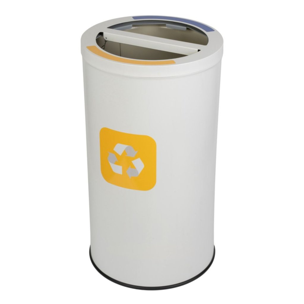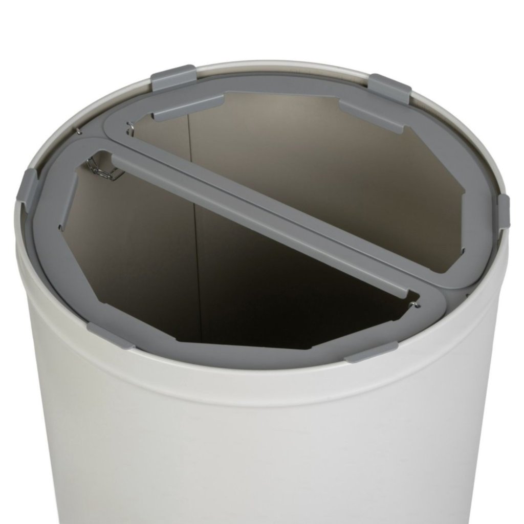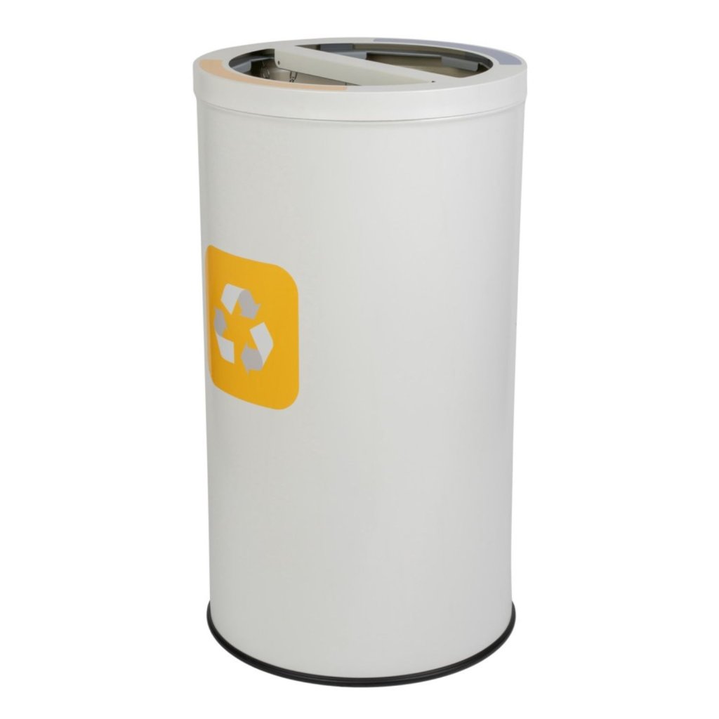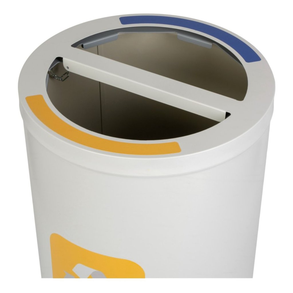 Tento kulatý koš na třídění odpadu se dvěmi komorami po 35 l je navržen pro každodenní použití v prostorách s vysokými nároky na čistotu a efektivitu. Držáky na pytle usnadňují vysypávání odpadu, zatímco robustní konstrukce zajišťuje stabilitu a dlouhou životnost. Práškově lakovaný povrch chrání proti poškrábání a korozi, takže koš si uchovává svůj moderní vzhled i při intenzivním používání. Díky barevným značením u otvorů je třídění intuitivní a vhodné i pro veřejné prostory.