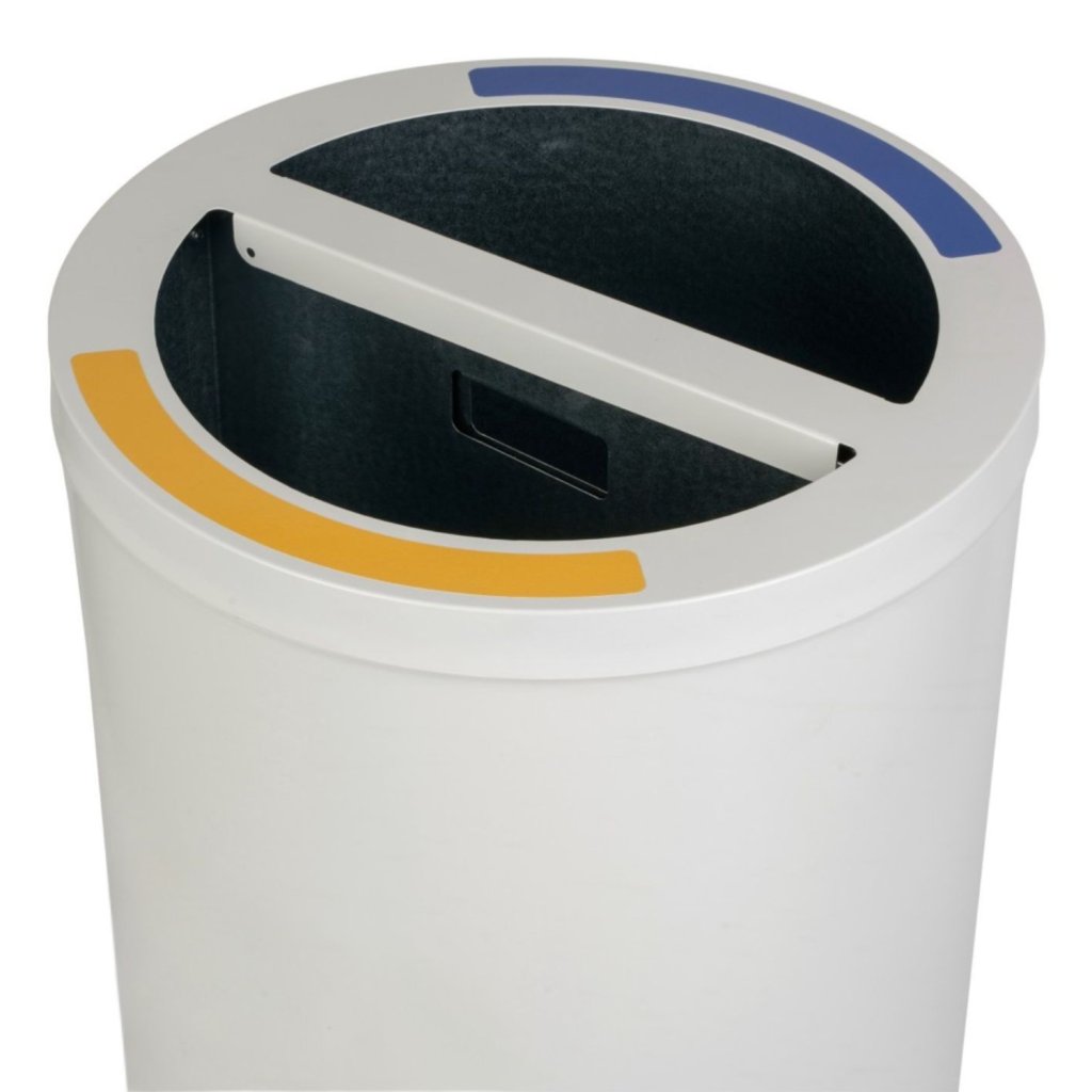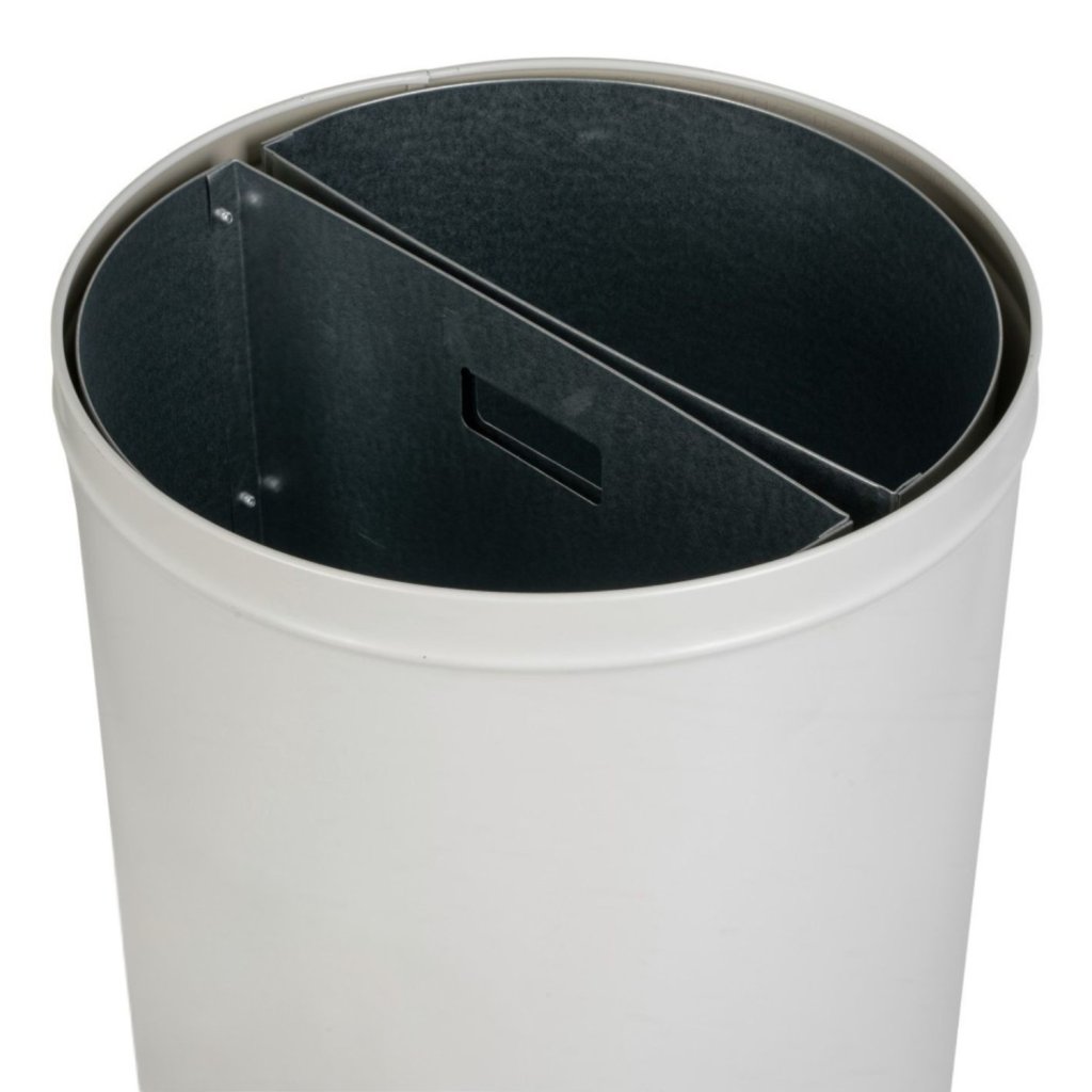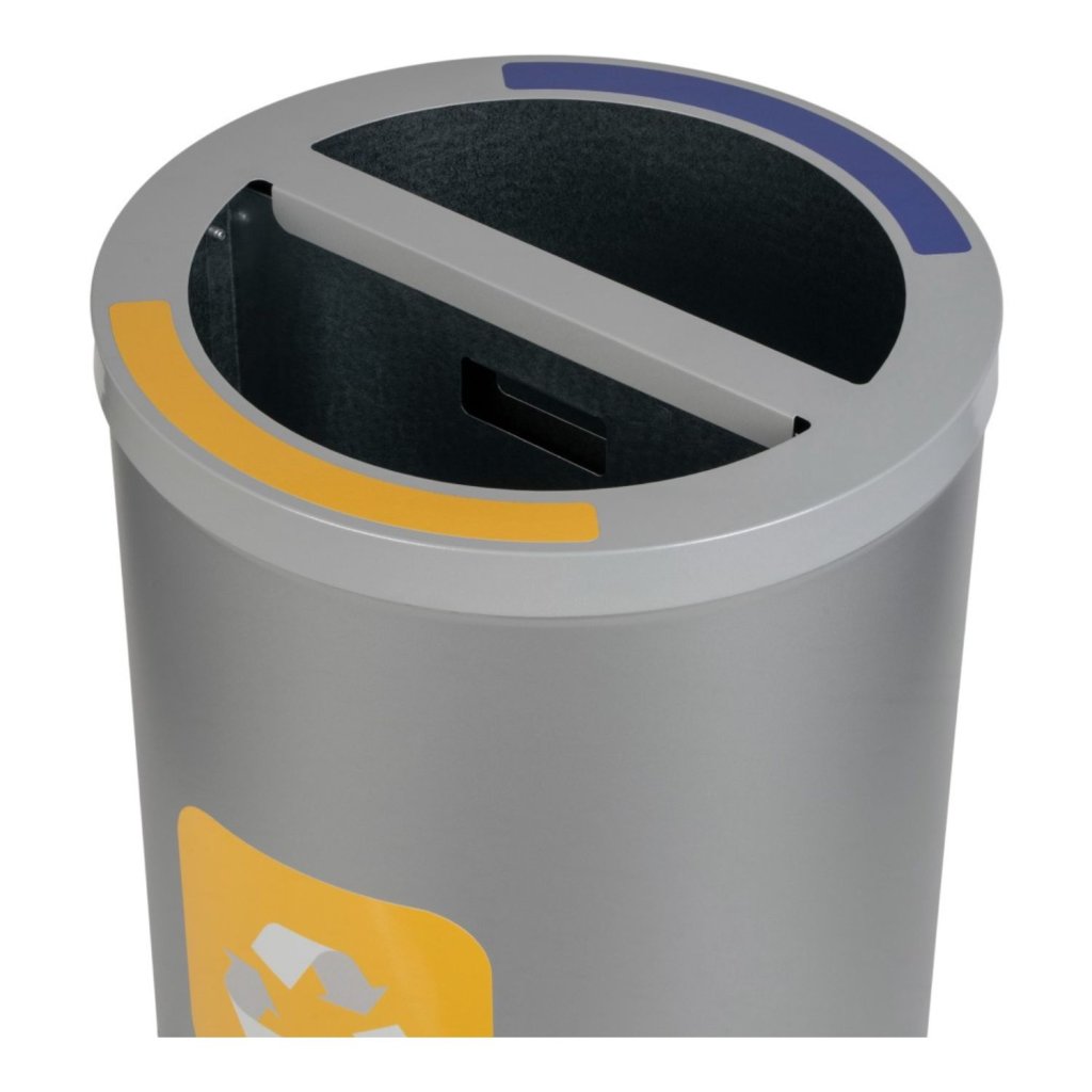 Tento kulatý koš na třídění odpadu se dvěmi komorami po 30 l je navržen pro každodenní použití v prostorách s vysokými nároky na čistotu a efektivitu. Ocelové vložky usnadňují vysypávání a čištění, zatímco robustní konstrukce zajišťuje stabilitu a dlouhou životnost. Práškově lakovaný povrch chrání proti poškrábání a korozi, takže koš si uchovává svůj moderní vzhled i při intenzivním používání. Díky barevným značením u otvorů je třídění intuitivní a vhodné i pro veřejné prostory.