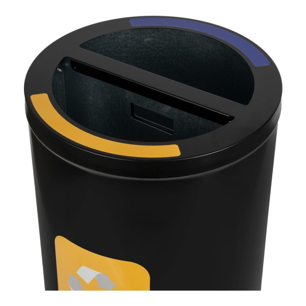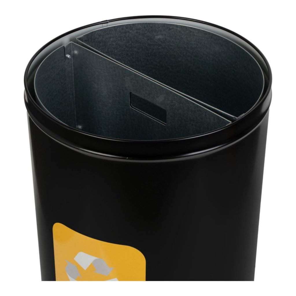 Tento kulatý koš na třídění odpadu se dvěmi komorami po 30 l je navržen pro každodenní použití v prostorách s vysokými nároky na čistotu a efektivitu. Ocelové vložky usnadňují vysypávání a čištění, zatímco robustní konstrukce zajišťuje stabilitu a dlouhou životnost. Práškově lakovaný povrch chrání proti poškrábání a korozi, takže koš si uchovává svůj moderní vzhled i při intenzivním používání. Díky barevným značením u otvorů je třídění intuitivní a vhodné i pro veřejné prostory.