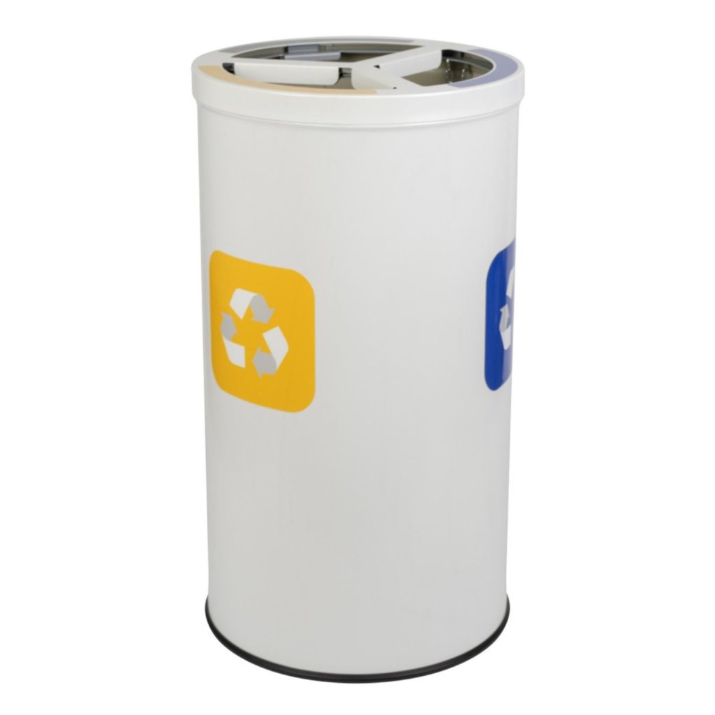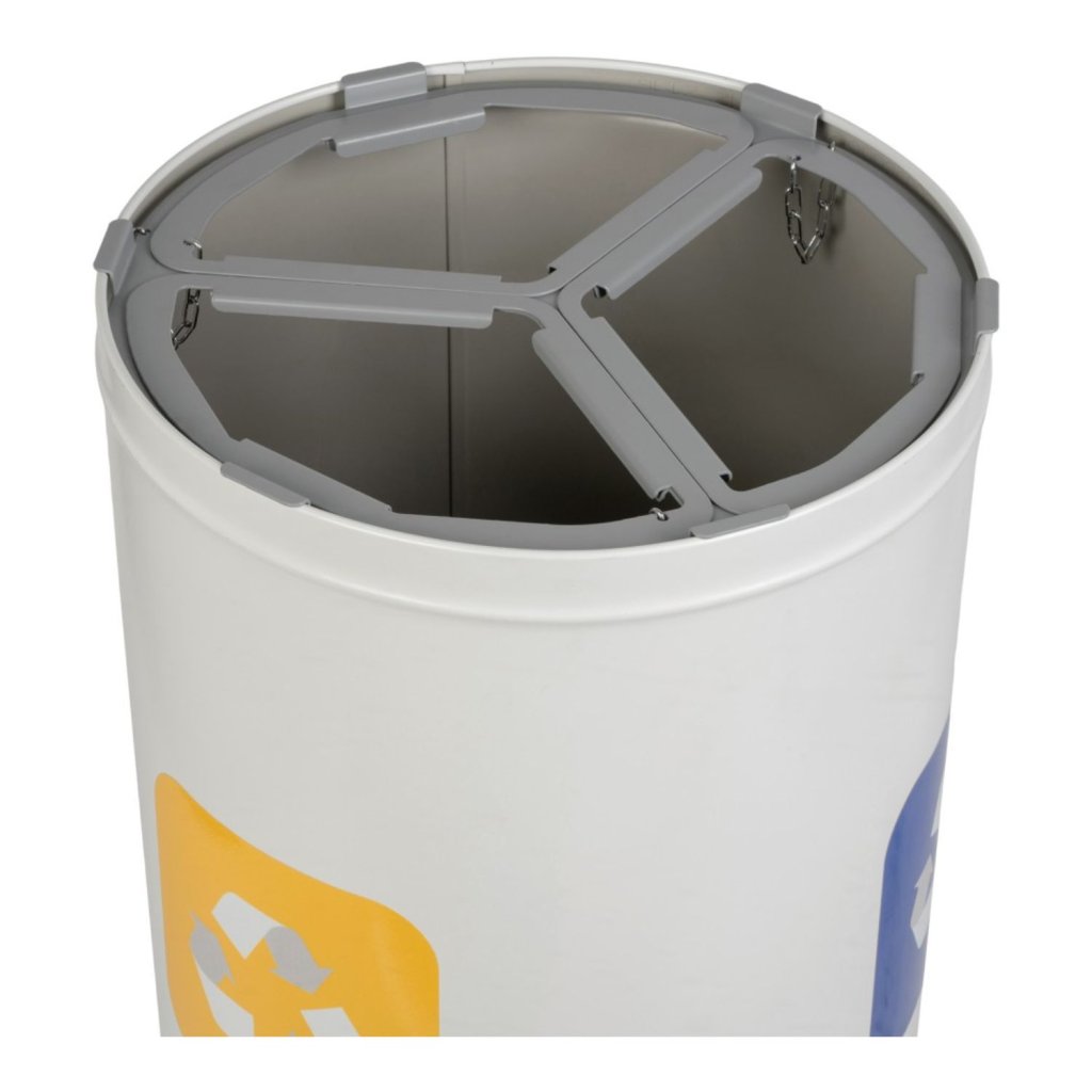 Tento kulatý koš na třídění odpadu se třemi komorami po 25 l je navržen pro každodenní použití v prostorách s vysokými nároky na čistotu a efektivitu. Držáky na pytle usnadňují vysypávání odpadu, zatímco robustní konstrukce zajišťuje stabilitu a dlouhou životnost. Práškově lakovaný povrch chrání proti poškrábání a korozi, takže koš si uchovává svůj moderní vzhled i při intenzivním používání. Díky barevným značením u otvorů je třídění intuitivní a vhodné i pro veřejné prostory.