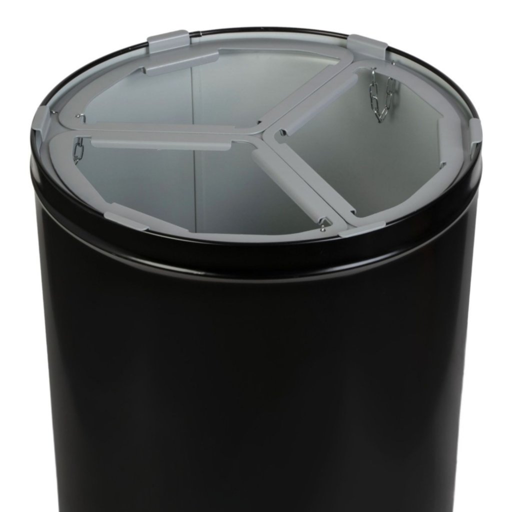 Tento kulatý koš na třídění odpadu se třemi komorami po 25 l je navržen pro každodenní použití v prostorách s vysokými nároky na čistotu a efektivitu. Držáky na pytle usnadňují vysypávání odpadu, zatímco robustní konstrukce zajišťuje stabilitu a dlouhou životnost. Práškově lakovaný povrch chrání proti poškrábání a korozi, takže koš si uchovává svůj moderní vzhled i při intenzivním používání. Díky barevným značením u otvorů je třídění intuitivní a vhodné i pro veřejné prostory.
