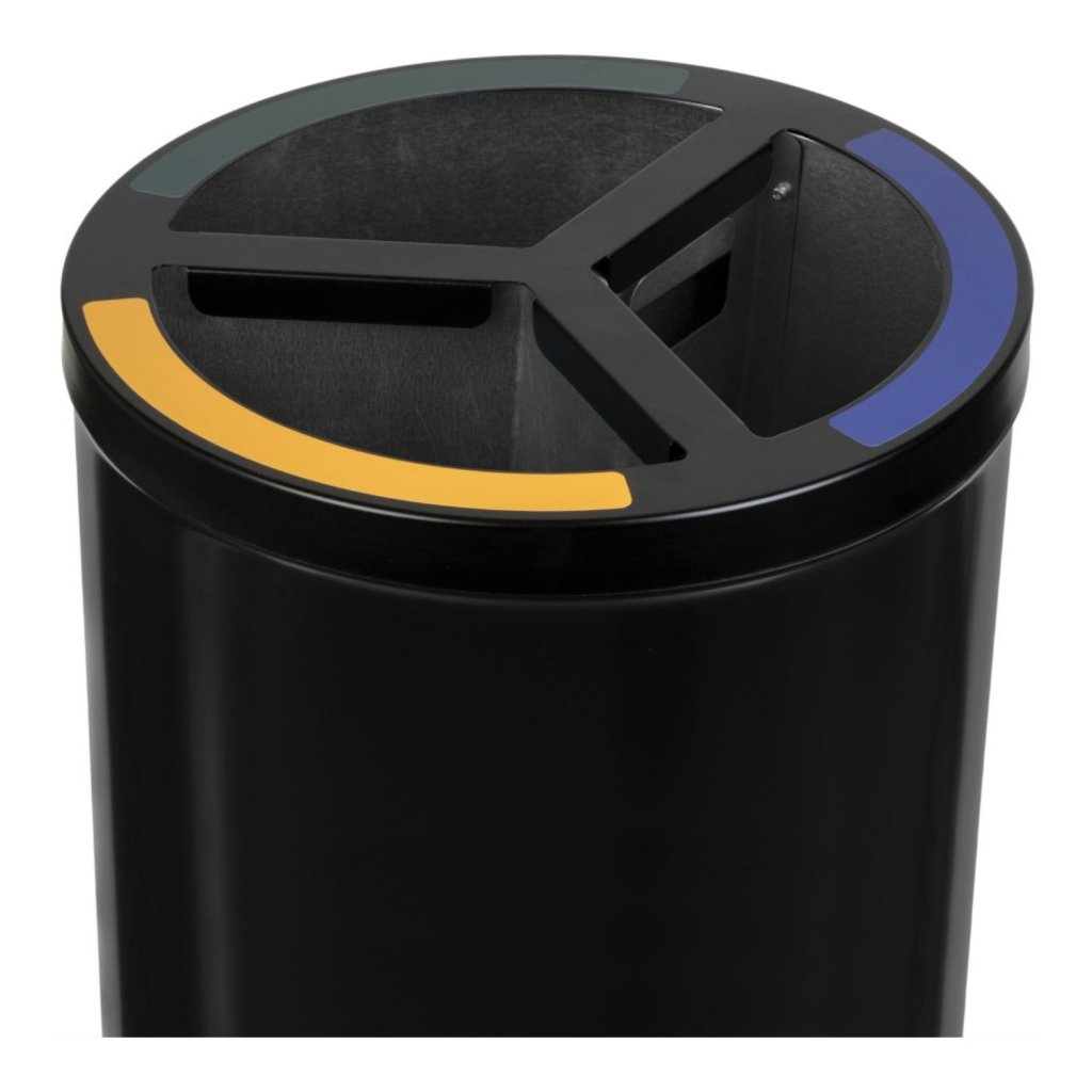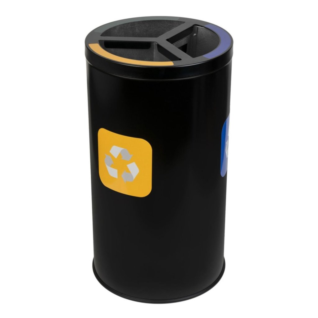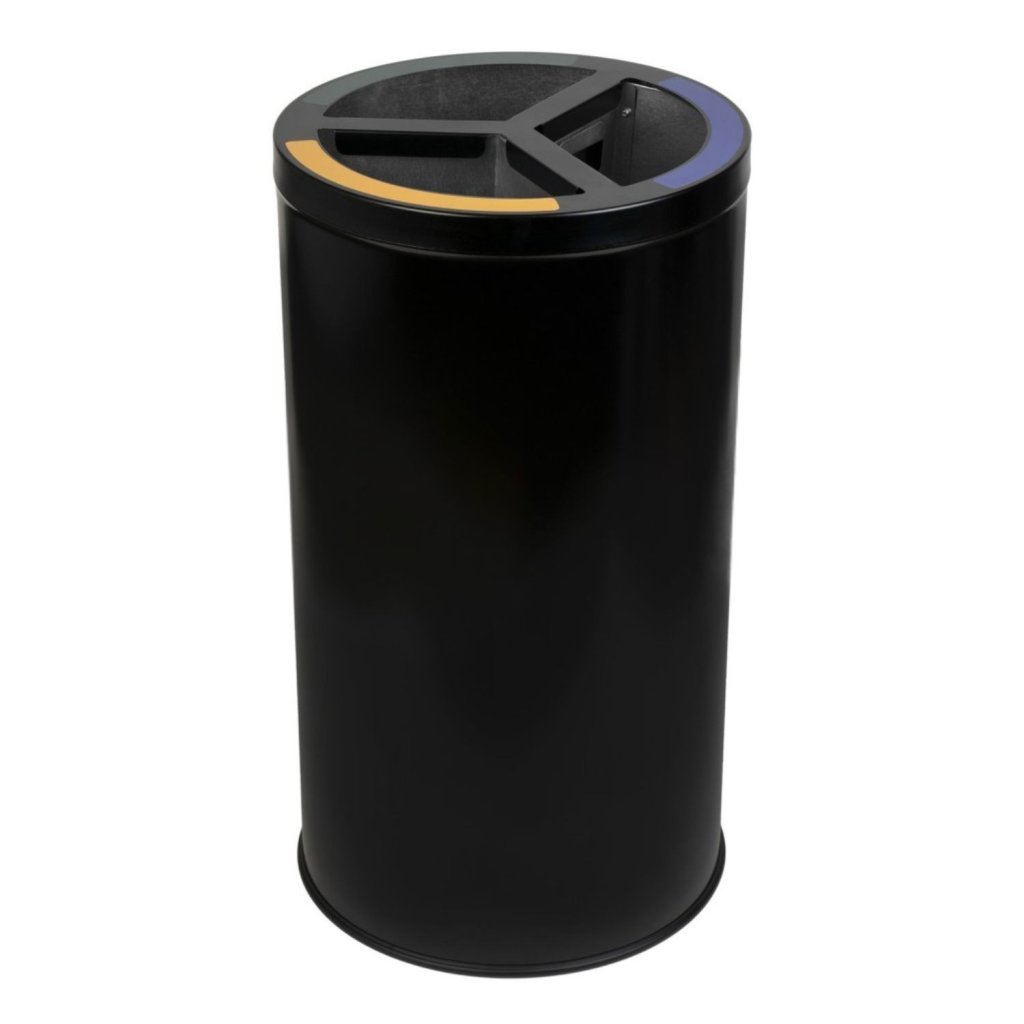 Tento kulatý koš na třídění odpadu se třemi komorami po 20 l je navržen pro každodenní použití v prostorách s vysokými nároky na čistotu a efektivitu. Ocelové vložky usnadňují vysypávání a čištění, zatímco robustní konstrukce zajišťuje stabilitu a dlouhou životnost. Práškově lakovaný povrch chrání proti poškrábání a korozi, takže koš si uchovává svůj moderní vzhled i při intenzivním používání. Díky barevným značením u otvorů je třídění intuitivní a vhodné i pro veřejné prostory.