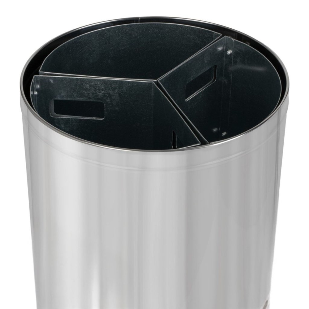 Tento kulatý koš na třídění odpadu se třemi komorami po 20 l je navržen pro každodenní použití v prostorách s vysokými nároky na čistotu a efektivitu. Ocelové vložky usnadňují vysypávání a čištění, zatímco robustní konstrukce zajišťuje stabilitu a dlouhou životnost. Práškově lakovaný povrch chrání proti poškrábání a korozi, takže koš si uchovává svůj moderní vzhled i při intenzivním používání. Díky barevným značením u otvorů je třídění intuitivní a vhodné i pro veřejné prostory.
