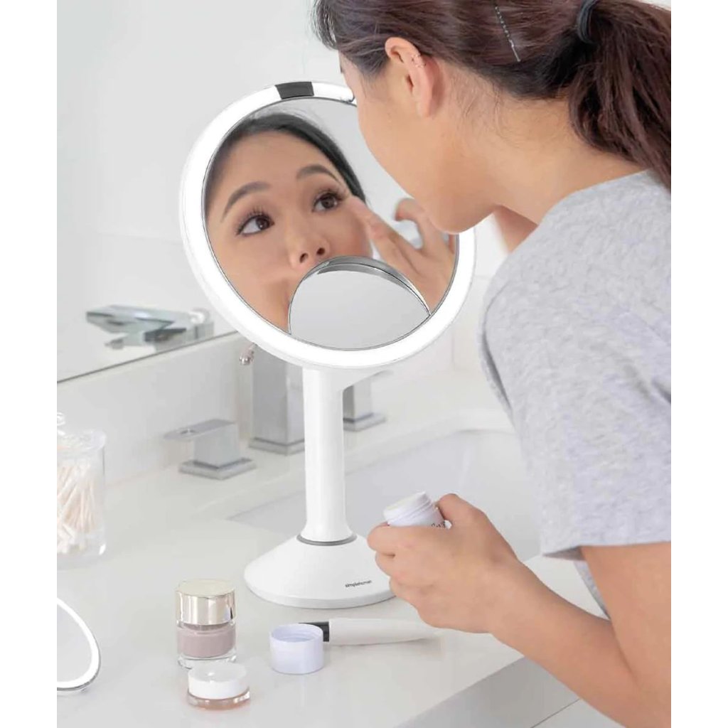 Kosmetické zrcátko Simplehuman Sensor TRIO, LED osvětlení, 1x/5x/10, dobíjecí, bílá nerez