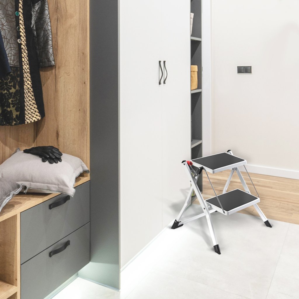 Lehké 2stupňové skládací a protiskluzové ocelové schůdky – Max 150 kg MSV
