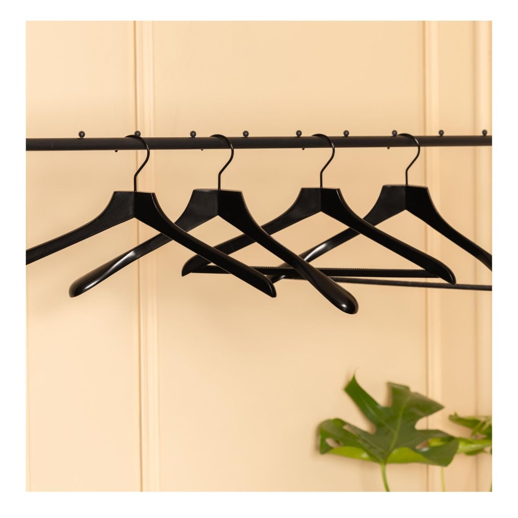 Šatní ramínka ALL IN BLACK spojují poctivé řemeslo, funkčnost a minimalistický design a vyniknou v každém šatníku. V sérii najdete univerzální ramínko na všechny typy svrchních oděvů, ramínko s kalhotovou tyčí s protiskluzovým povrchem a ramínko s rozšířenými konci na těžké kabáty a bundy.