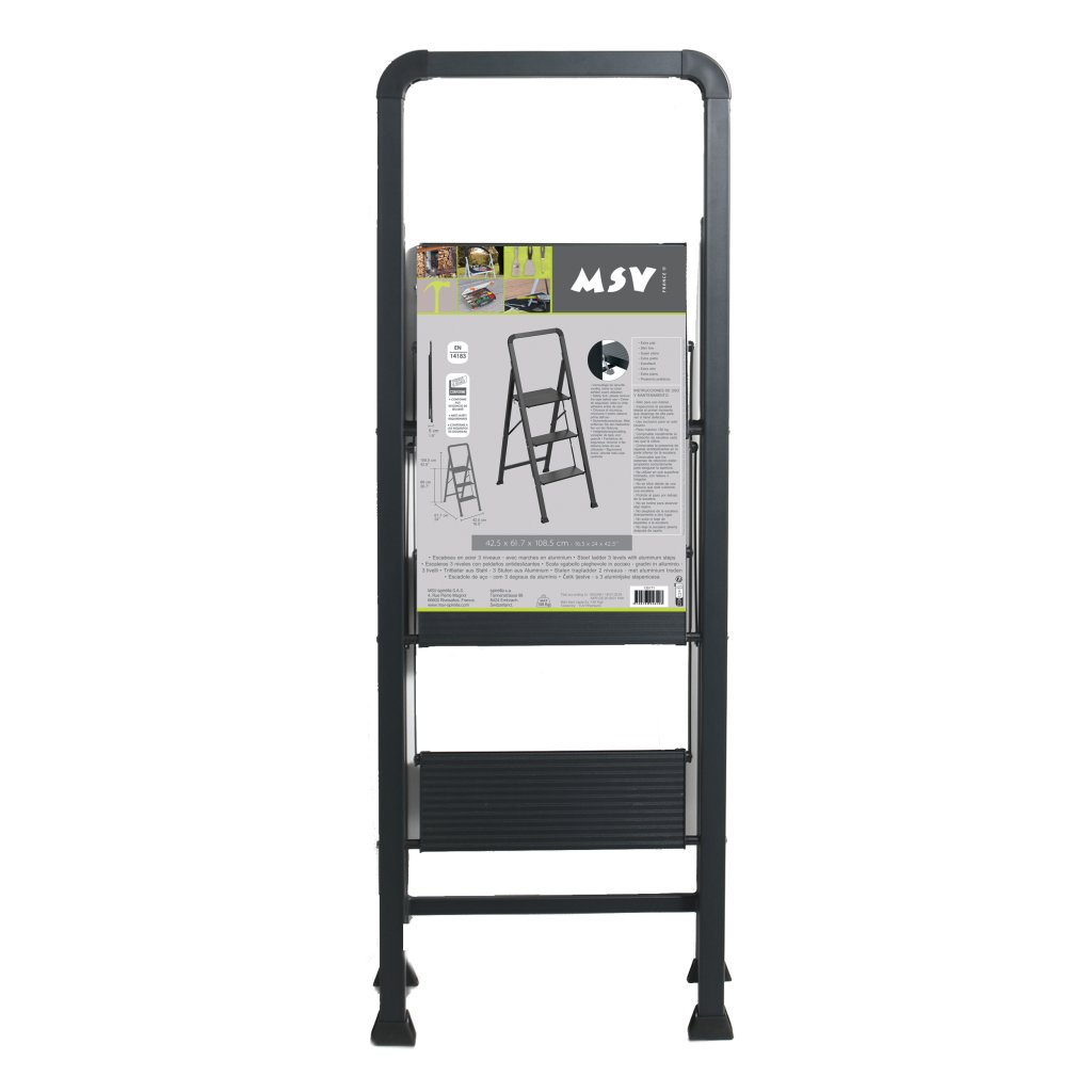 MSV 3stupňové skládací ocelové štafle do 150 kg (62 x 42,5 x 108 cm) matná černá