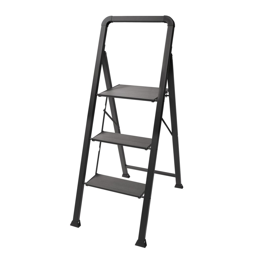 Tyto ocelové třístupňové štafle jsou ideálním pomocníkem pro domácnost i dílnu.