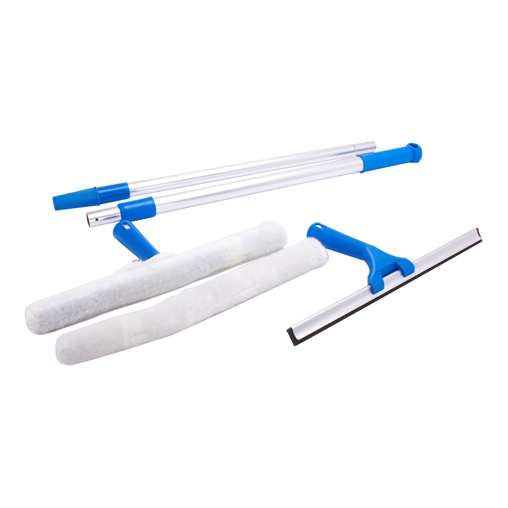 5dílná speciální profesionální sada na mytí oken od značky MSV. Obsahuje: 1 x stěrka, 1 x houbička, 1 x ergonomické protiskluzové madlo, 1 x teleskopická kovová rukojeť, 67 až 150 cm. Ideální pro čištění skel sprchového koutu, oken v domě nebo dokonce oken vašeho automobilu bez jakýchkoli šmouh.