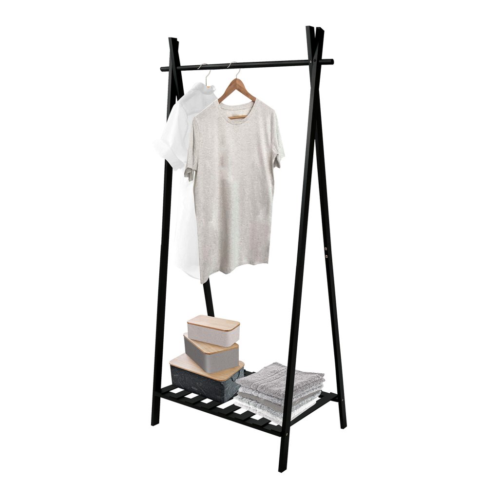 Věšák na oblečení od značky MSV. Otevřená šatní skříň s distingovaným vzhledem! Tento designový věšák na oblečení vyrobený z přírodního bambusového materiálu vnese do vašeho interiéru ležérní styl. Budete mít dostatek místa na zavěšení a uložení oblečení, obuvi nebo jiných doplňků. Praktický a elegantní věšák na oblečení je optimálním úložným řešením pro vaši domácnost. Jeho velká úložná kapacita vám umožní udržet pořádek ve vaší domácnosti a zároveň přinést jedinečný a elegantní styl. Rozměry: 64/78 x 44,5 x 159 cm Barva: černá Materiál: bambus a MDF