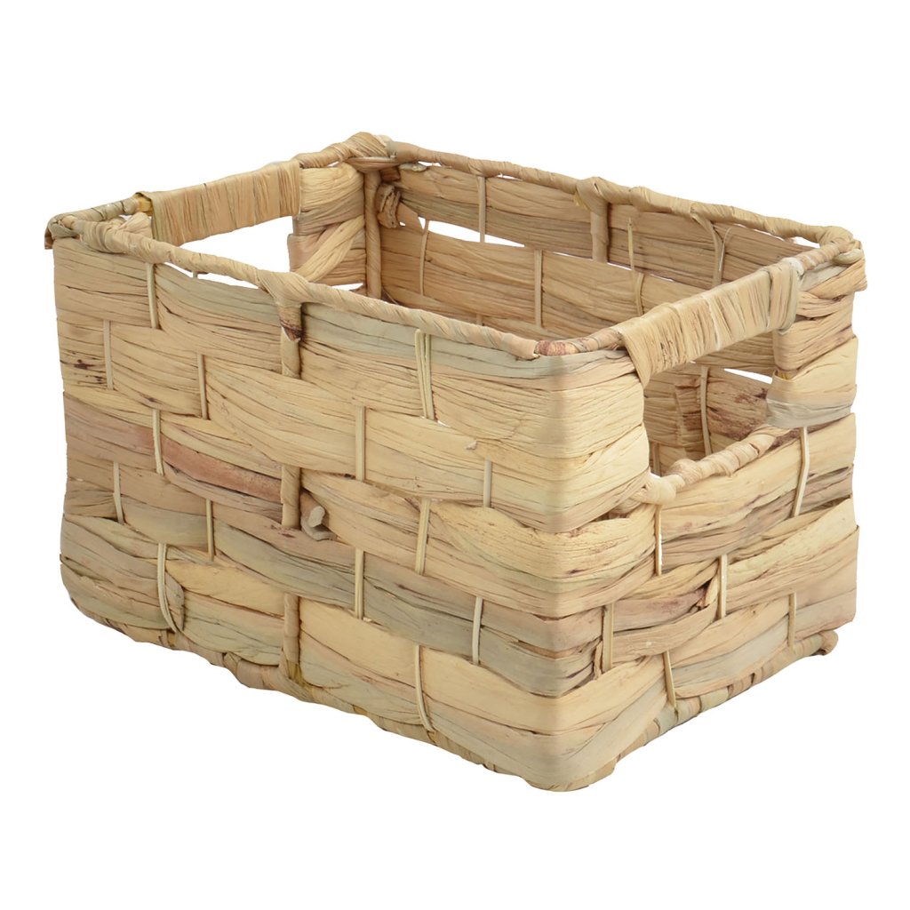 malý košík – 18 x 13 x 12 cm, střední košík – 22 x 16 x 14 a velký košík – 18 x 13 x 12. Tyto košíky jsou tak ideální pro ukládání různých předmětů různých velikostí. Barva: béžová Materiál: vodní hyacint