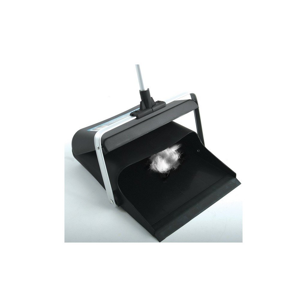 MSV smetáček s lopatkou, s výklopným víkem, na tyči, černý, plast, hliník, 84 cm