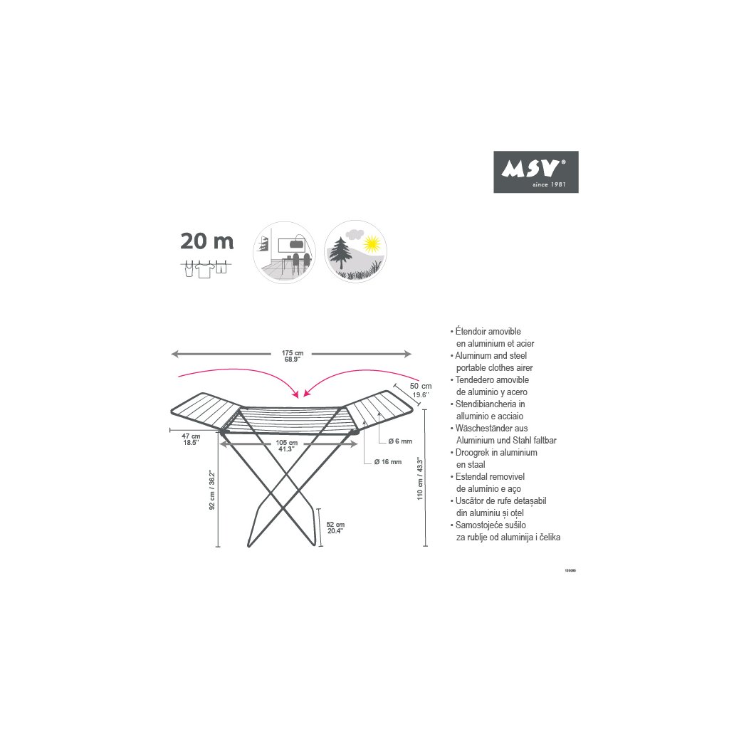 Sušák na prádlo MSV je ideálním řešením pro pohodlné a efektivní sušení prádla doma i venku. Díky sušicí ploše až 20 metrů nabízí dostatek místa pro usušení veškerého oblečení najednou – od běžného prádla až po větší kusy. Konstrukce z kvalitního kovu zajišťuje vysokou odolnost a stabilitu, zatímco skládací křídla umožňují snadné přizpůsobení prostoru i kompaktní složení, když sušák zrovna nepoužíváte. Praktický a spolehlivý pomocník pro každodenní sušení.