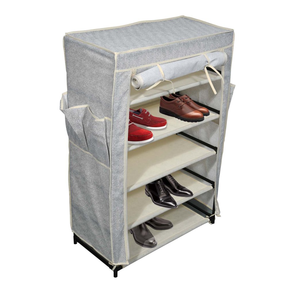 Botník s policemi a bočními kapsami, šedý od značky MSV. Praktické a rychle sestavitelné řešení úložného prostoru; nenechávejte své boty ležet jen tak kolem! Netkaná podšívka chrání vaše oblečení před prachem a nečistotami a zároveň umožňuje cirkulaci vzduchu uvnitř skříně. Boční kapsy doplňují tento kompaktní šatník. Železné tyče pro větší pevnost. Rozměry: 60 x 30 x 88 cm Barva: šedá Materiál: PP