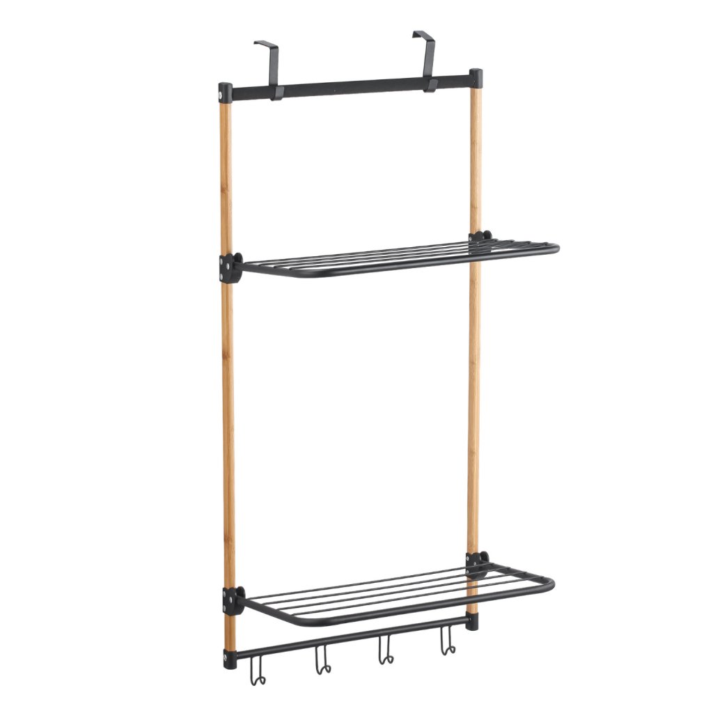 MSV závěsný koupelnový sušák ZOE, černý, ocel, bambus