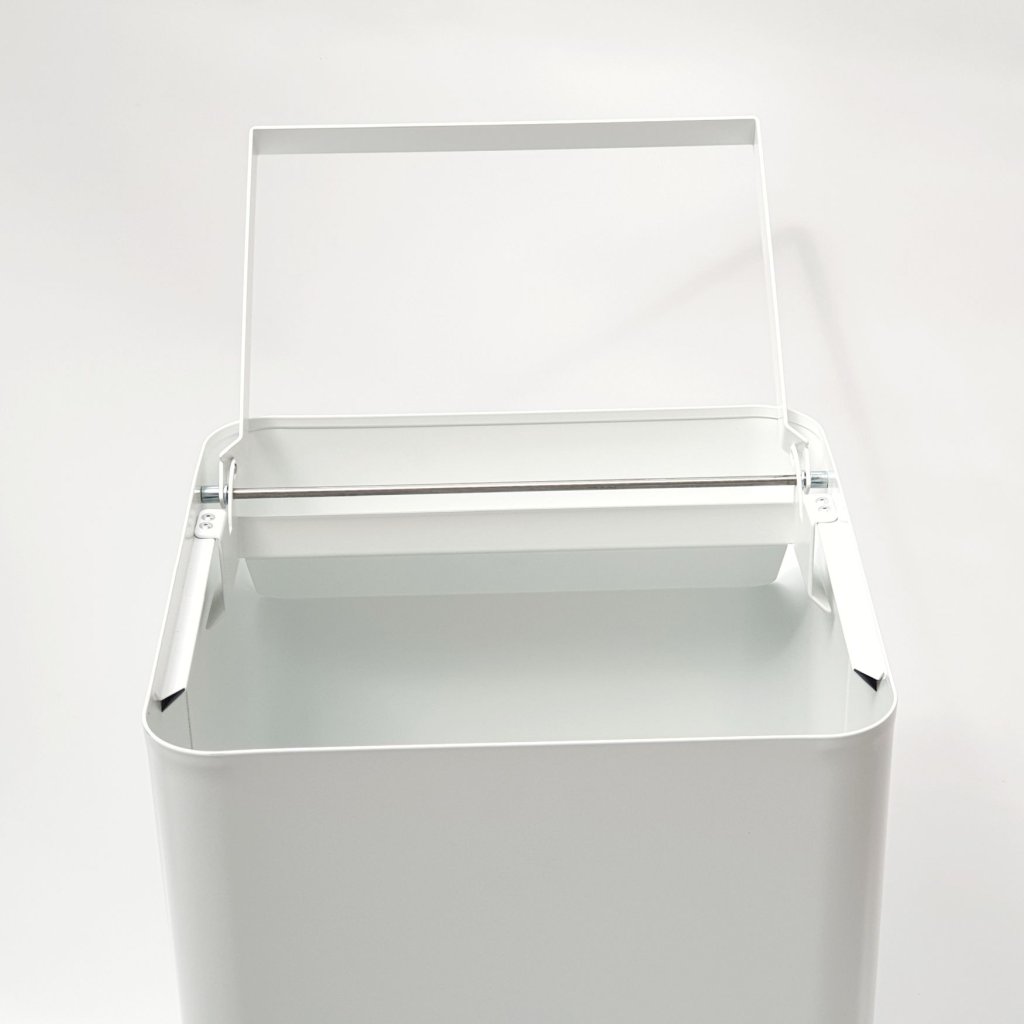 Moderní koš na separovaný odpad z oceli. Ideální odpadkový koš pro firemní reprezentativní prostory, do kanceláří či do rodinných interiérů jako vhodný designový doplněk s praktickým využitím. Praktické barevné samolepky ( lze přikoupit ) pak pomohou s určením košů pro jednotlivé druhy odpadu.